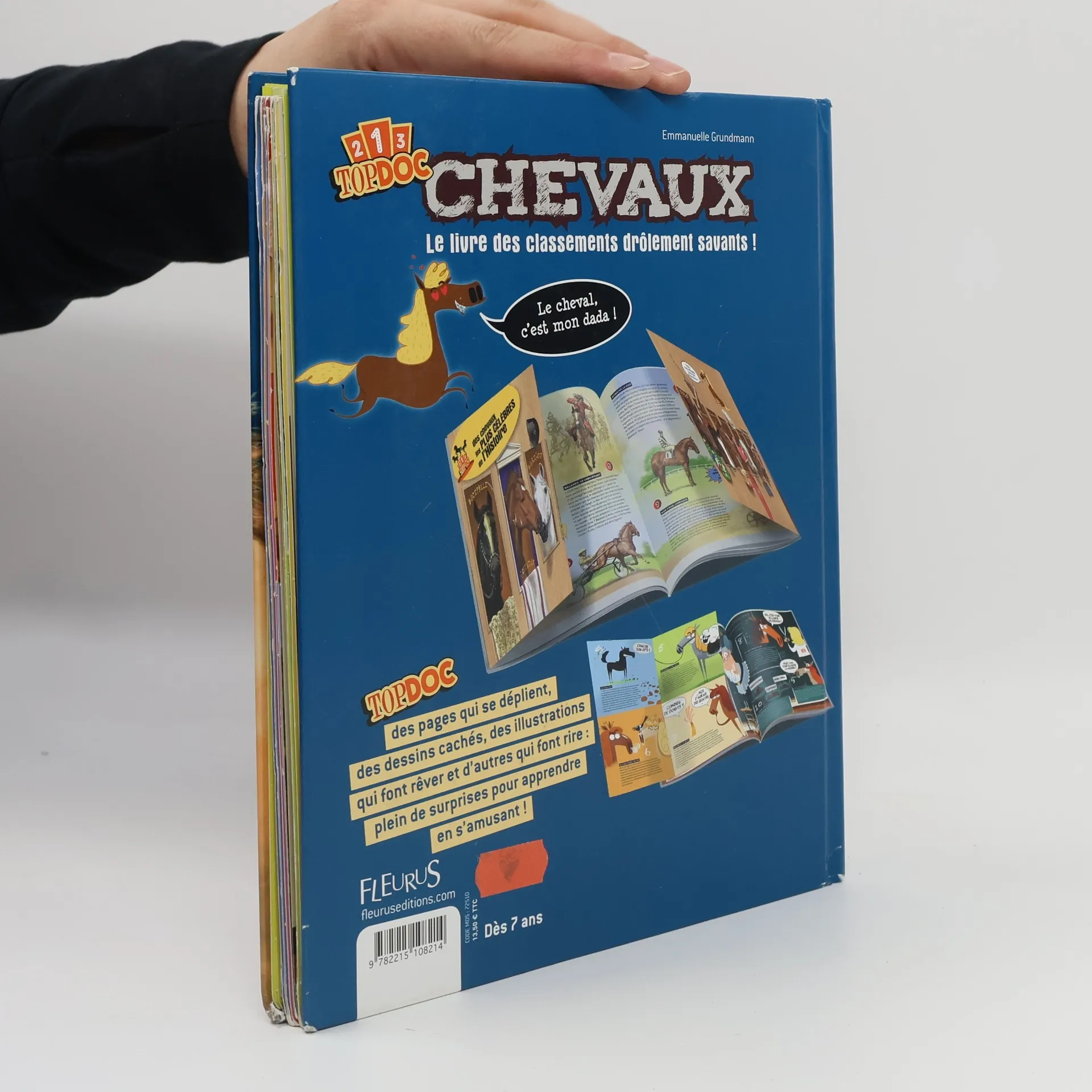 Le livre des classements drôlement savants ! Quel est le cheval le plus célèbre ? Lequel a remporté le plus de courses ? Est-ce qu’un cheval sait compter ? Pourquoi le cheval peut-il dormir debout ? Quel est le cheval le plus riche du monde ? Le poney est-il un cheval ? Le pur-sang arabe est-il plus rapide que le pur-sang anglais ? Pourquoi dit-on "monter sur ses grands chevaux" et pas "sur ses petits poneys ? Toutes les réponses, et encore plein d’infos étonnantes, dans Topdoc Chevaux !