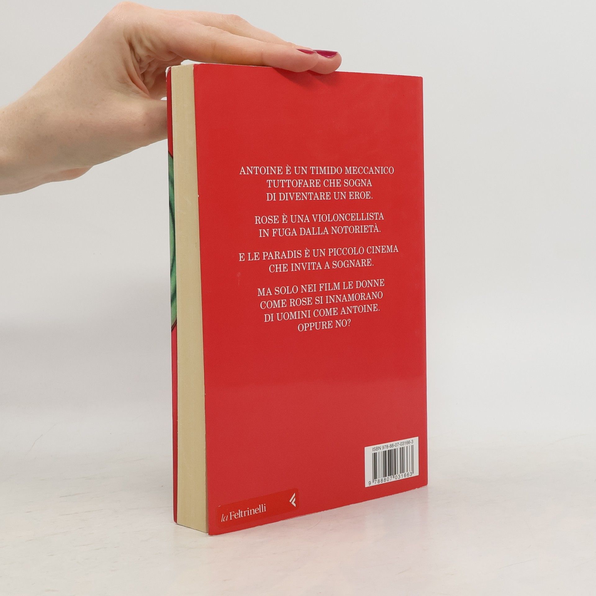 In una fredda domenica invernale, mentre una tempesta di neve avvolge Villerude-sur-Mer, una piccola stazione balneare sulla costa atlantica della Francia, un uomo e una donna varcano la soglia del cinema Le Paradis. La domenica è giorno di cineforum e il vecchio proiettore scricchiolante mostra sullo schermo le immagini in bianco e nero di Jean Gabin. Ma Antoine è distratto. Qualcuno in sala ha catturato la sua attenzione: una donna minuta, dal profilo delicato e i lunghi capelli rossi, una figura che sembra riemergere direttamente dalla sua infanzia. Capace di far funzionare qualsiasi congegno tranne la propria vita, Antoine è un abile meccanico tuttofare, un timido che sogna di diventare un eroe. La donna, invece, è Rose, violoncellista di talento in fuga dalla notorietà. Mentre il cinema Le Paradis rischia la demolizione e il paese spera in un piccolo miracolo, Antoine e Rose saranno i protagonisti di una grande avventura, un’impresa epica che vede coinvolti un Jack Russell di nome Nobody, Bach, due bambini su una spiaggia bianca, una vecchia cassaforte e delle luci difettose che lampeggiano ogni volta che qualcuno si avvicina a ciò che più desidera… Romantico e delicato, il nuovo, attesissimo romanzo di Caroline Vermalle.