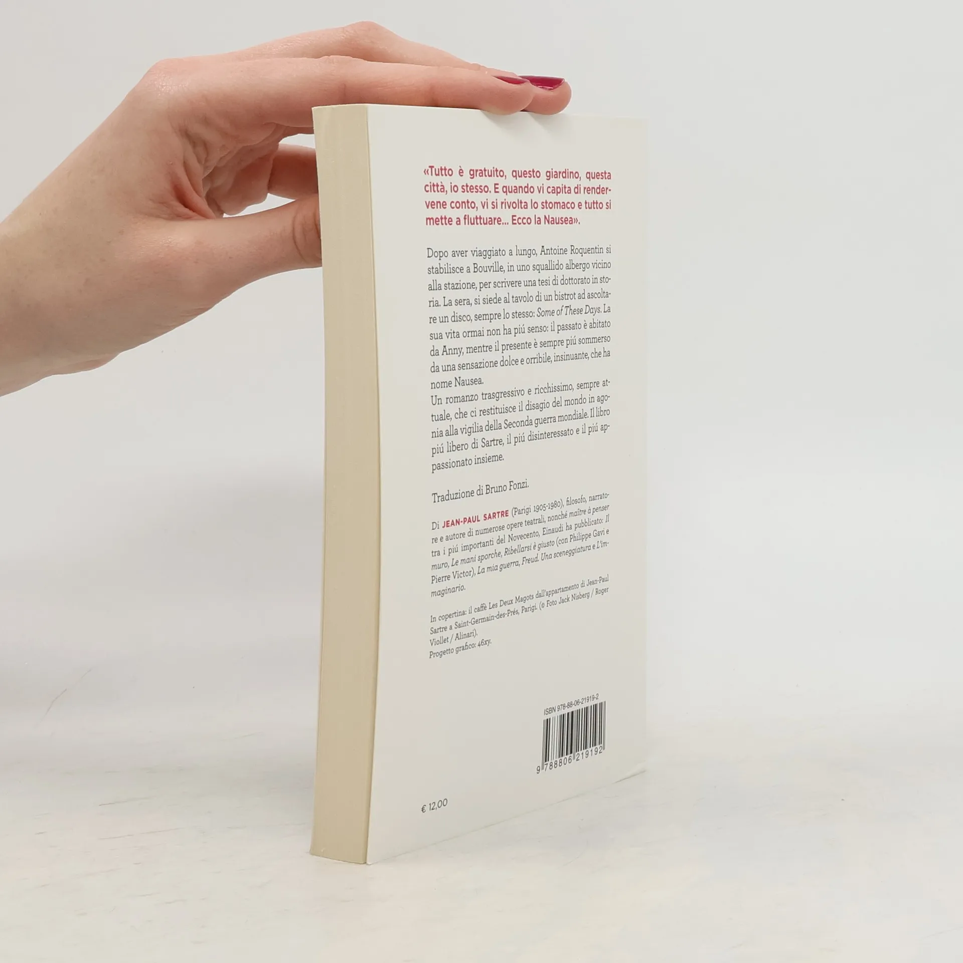 Dopo aver viaggiato a lungo, Antoine Roquentin si stabilisce a Bouville, in uno squallido albergo vicino alla stazione, per scrivere una tesi di dottorato in storia. La sera, si siede al tavolo di un bistrot ad ascoltare un disco, sempre lo stesso: "Some of These Days". La sua vita ormai non ha più senso: il passato è abitato da Anny, mentre il presente è sempre più sommerso da una sensazione dolce e orribile, insinuante, che ha nome Nausea. Un romanzo trasgressivo e ricchissimo, sempre attuale, che ci restituisce il disagio del mondo in agonia alla vigilia della Seconda guerra mondiale. Il libro più libero di Sartre, il più disinteressato e il più appassionato insieme.