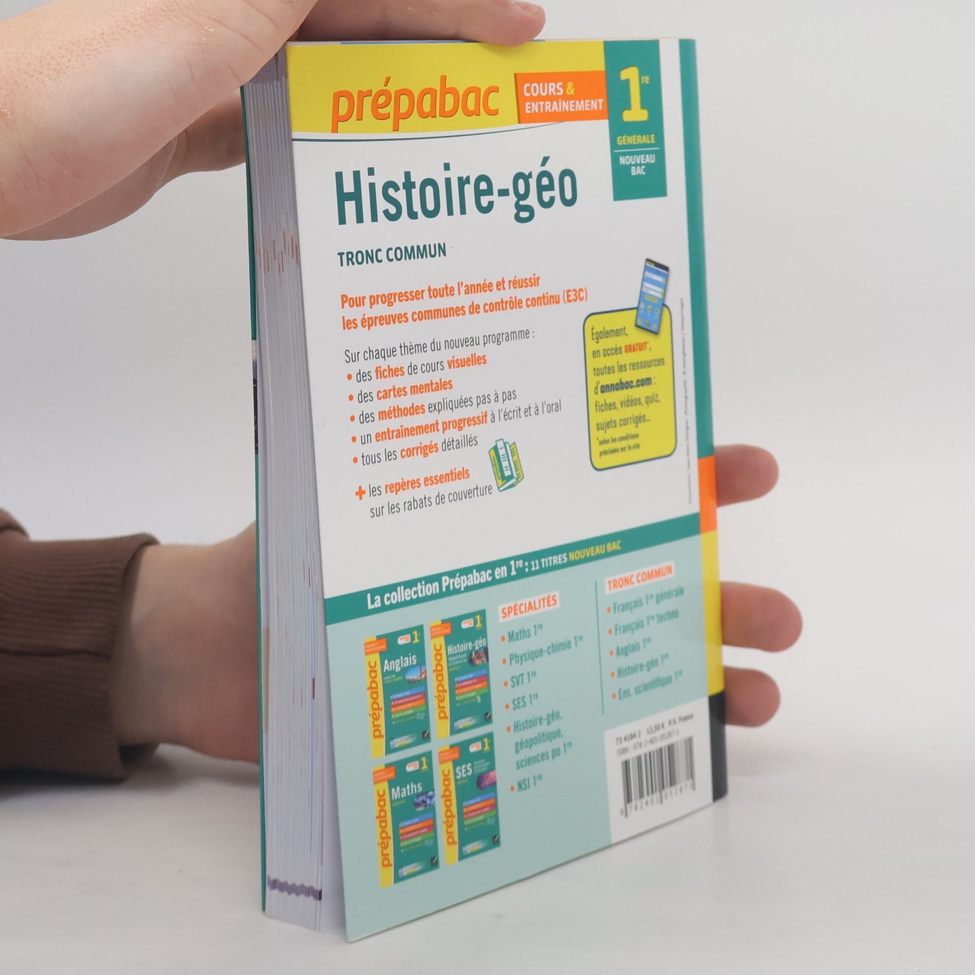 Pour progresser toute l'année et réussir les épreuves communes de contrôle continu (E3C). Sur chaque thème du nouveau programme : des fiches de cours visuelles, des cartes mentales, des méthodes expliquées pas à pas, un entraînement progressif à l'écrit et à l'oral, tous les corrigés détaillés + les repères essentiels sur les rabats de couverture. Egalement, en accès gratuit, toutes les ressources d'annabac.com : fiches, vidéos, quiz, sujets corrigés...