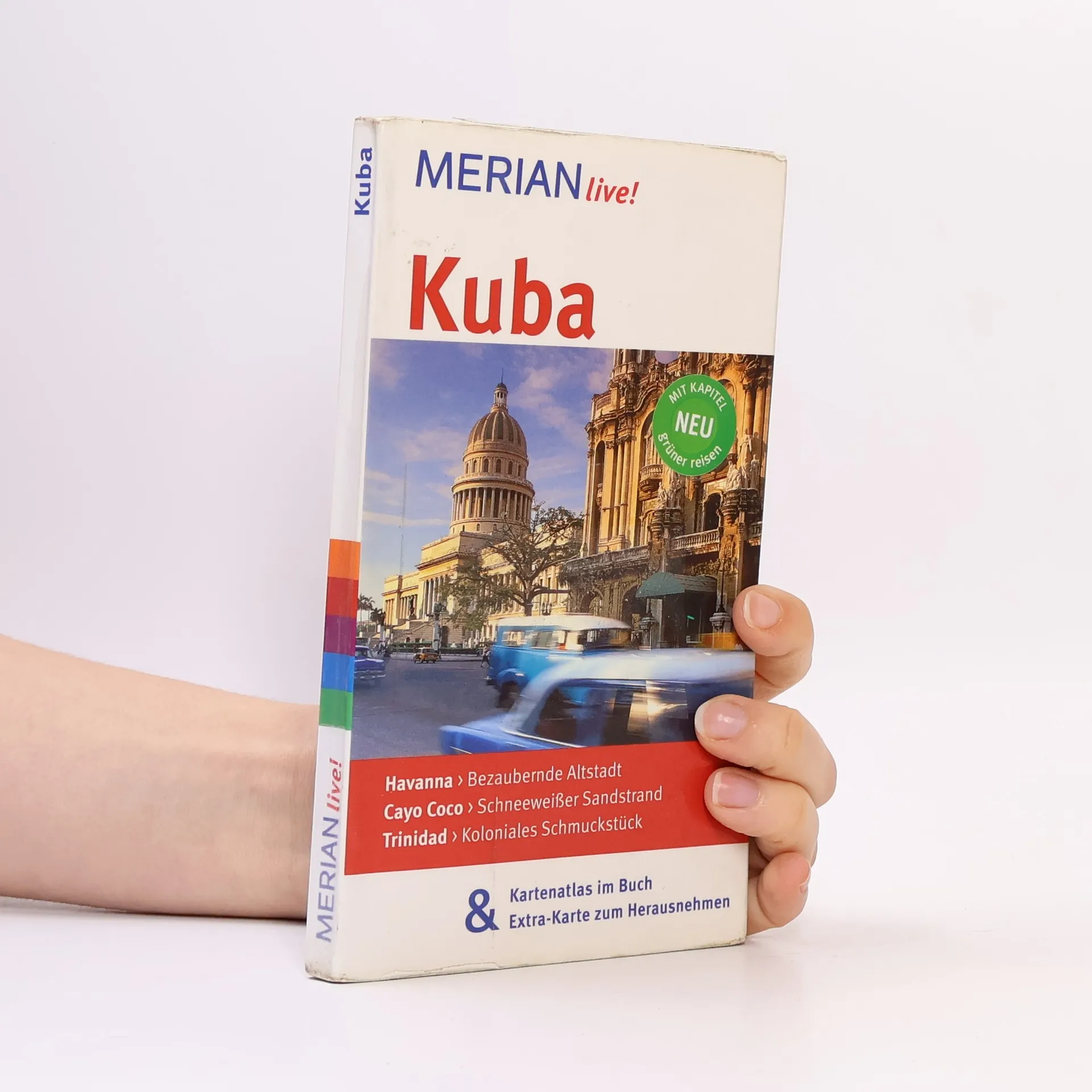 Sonne und Sozialismus, Rumba und Revolution. Kuba ist die Perle der Karibik und ein Land mit vielen Gesichtern und Facetten. Ob die alte Diva Havanna, die Traumstrände der Cayos, die koloniale Schönheit Trinidad oder die Tabaklandschaften von Pinar del Río - es ist schwer, Kuba nicht zu verfallen. MERIAN live! bietet: - Fundierte Beschreibungen aller wichtigen Orte, Sehenswürdigkeiten und Museen - Sorgfältig ausgewählte Hotel- und Restaurantempfehlungen, Ausgeh- und Shoppingadressen sowie Tipps für Familien - Empfehlungen für den umweltbewussten Urlaub im Kapitel grüner reisen - 10 MERIAN-TopTen stellen die Höhepunkte der Insel vor - 10 MERIAN-Tipps führen zu den unbekannten Seiten der Insel - Stadtpläne von La Habana Vieja, Havanna, Santa Clara, Trinidad, Holguín und Santiago de Cuba zur leichten Orientierung - Doppelter Vorteil: Kartenatlas im Buch und Extra-Karte zum Herausnehmen