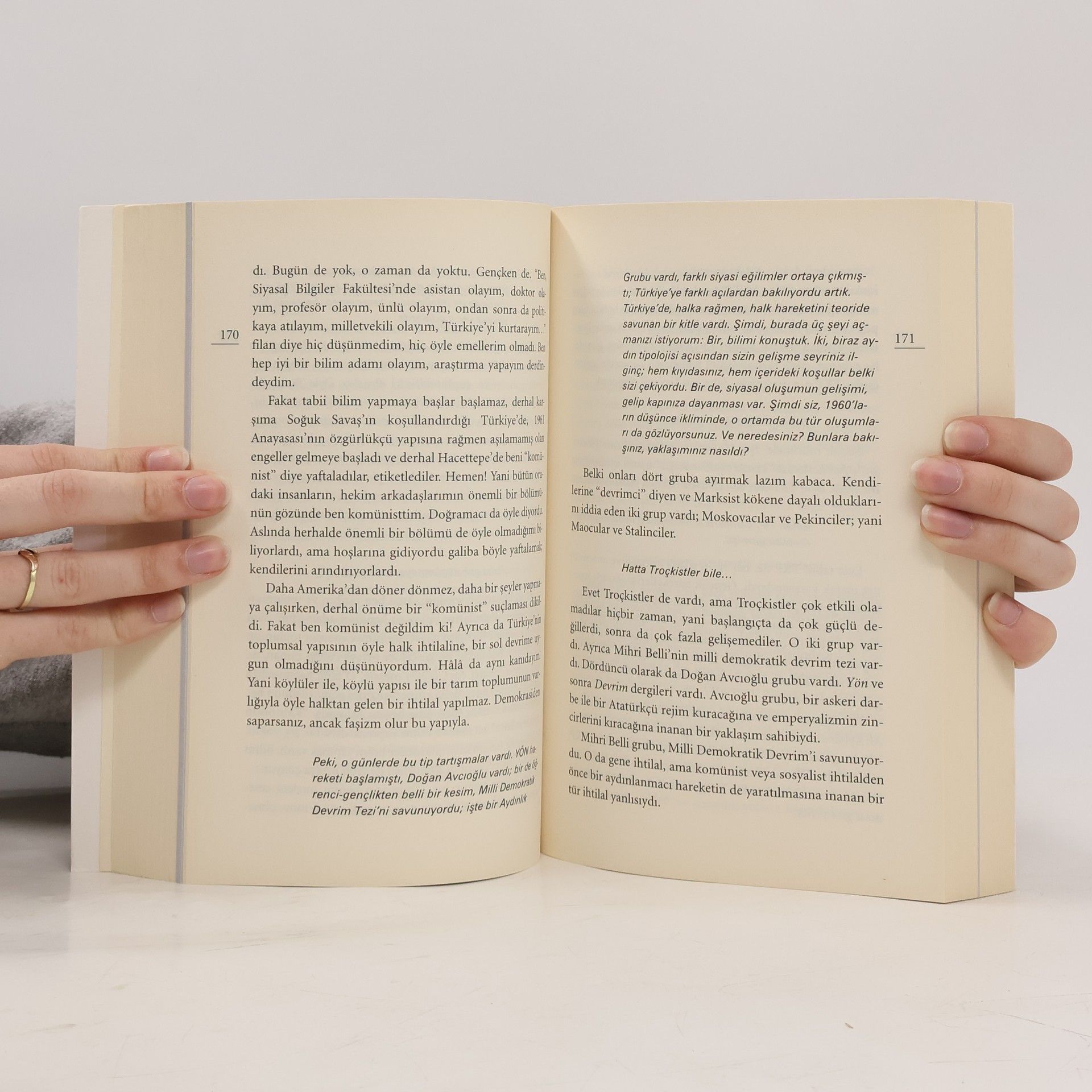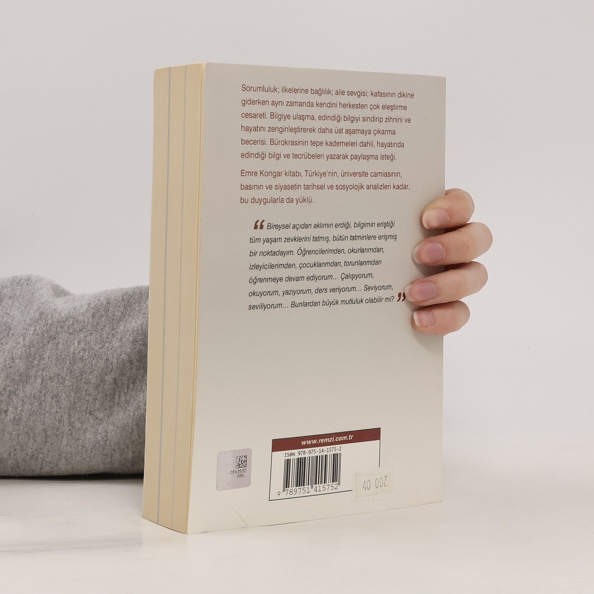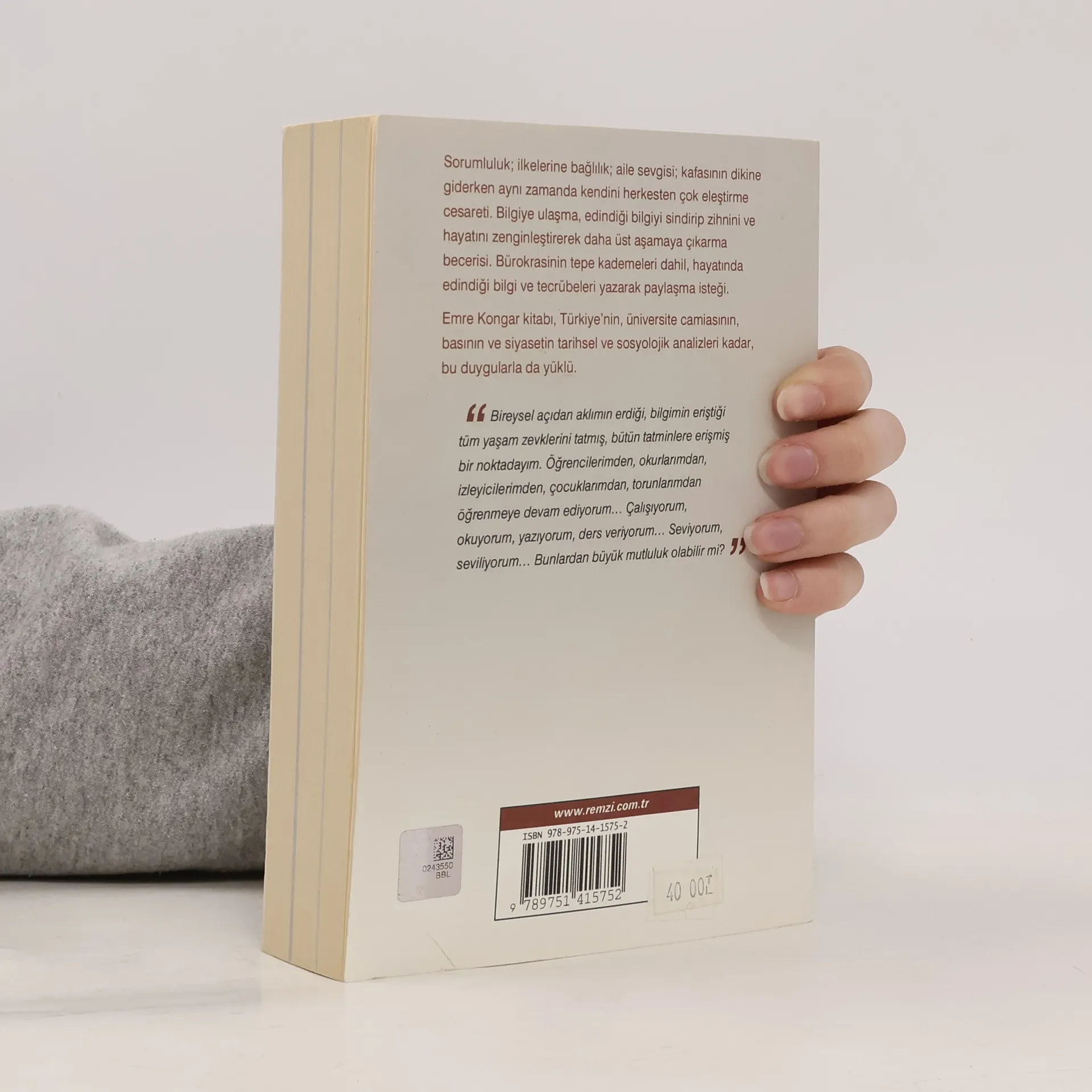 Sorumluluk; ilkelerine bağlılık; aile sevgisi; kafasının dikine giderken aynı zamanda kendini herkesten çok eleştirme cesareti. Bilgiye ulaşma, edindiği bilgiyi sindirip zihnini ve hayatını zenginleştirerek daha üst aşamaya çıkarma becerisi. Bu duygularla bürokrasinin tepe kademeleri dahil, hayatında edindiği bilgi ve tecrübeleri yazarak paylaşan Kongar'la yapılan bir söyleşi kitabı. Türkiye'nin, üniversite camiasının, basının ve siyasetin tarihsel ve sosyolojik analizleriyle yüklü bir tanıklık.