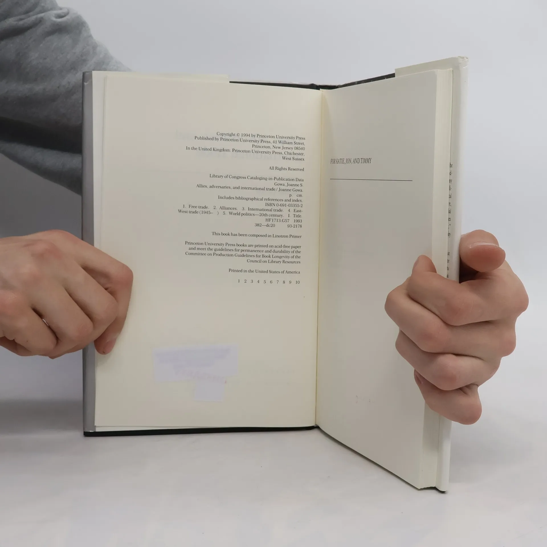 Allies, Adversaries, and International Trade, Joanne S. Gowa