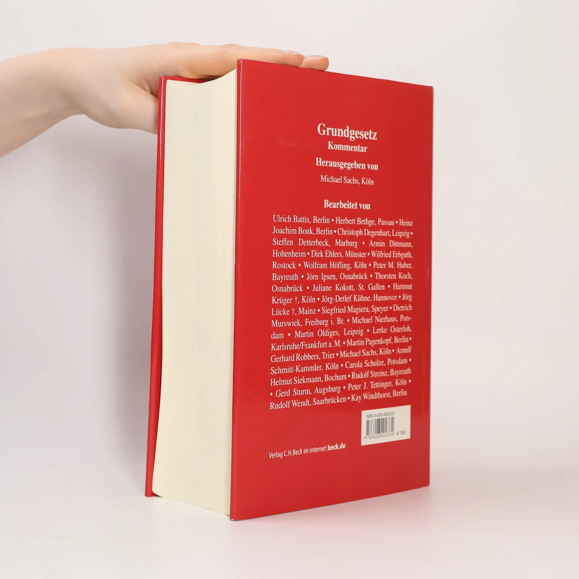 Sachs, Michael [Hrsg.]/Battis, Ulrich. Grundgesetz. Kommentar. München, Beck, 1996. 25 cm. LXII, 2015 Seiten. Hardcover / Originaler Leinenband mit Schutzumschlag. Sehr guter, neuwertiger Zustand mit nur ganz geringen Gebrauchsspuren am Schnitt.