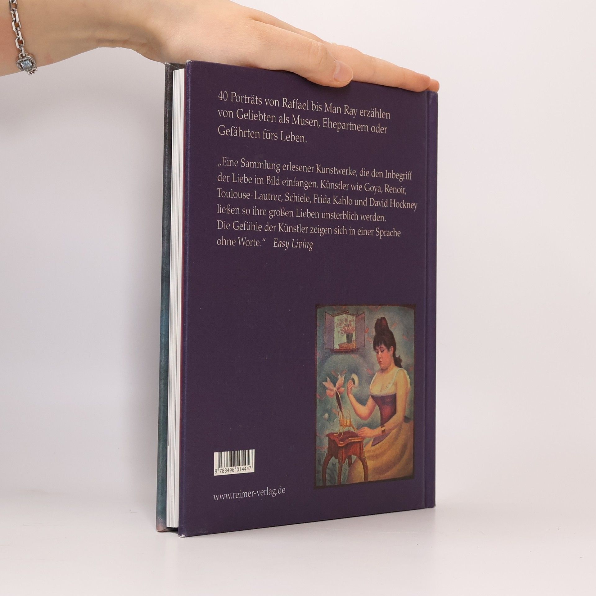 Die Künstler: Filippo Lippi, Raphael Sanzio, Cristofano Allori, Peter Paul Rubens, Rembrandt van Rijn, Allan Ramsay, Francisco Goya, Théodore Chassériau, John Everett Millais, Edouard Manet, Anselm Feuerbach, Dante Gabriel Rossetti, Pierre-Auguste Renoir, Carolus-Duran, Vincent Van Gogh, Pierre Puvis de Chavannes, Auguste Rodin, Henri de Toulouse-Lautrec, Georges Seurat, Giovanni Segantini, Maurice Denis, Paul Gauguin, Camille Claudel, Anna Klumpke, Gustav Klimt, Augustus John, Suzanne Valadon, Egon Schiele, Marc Chagall, Dora Carrington, Amedeo Modigliani, Man Ray, Frida Kahlo, Salvador Dali, Pablo Picasso, Stanley Spencer, Eric Gill, Lee Miller, Astrid Kirchherr, David Hockney