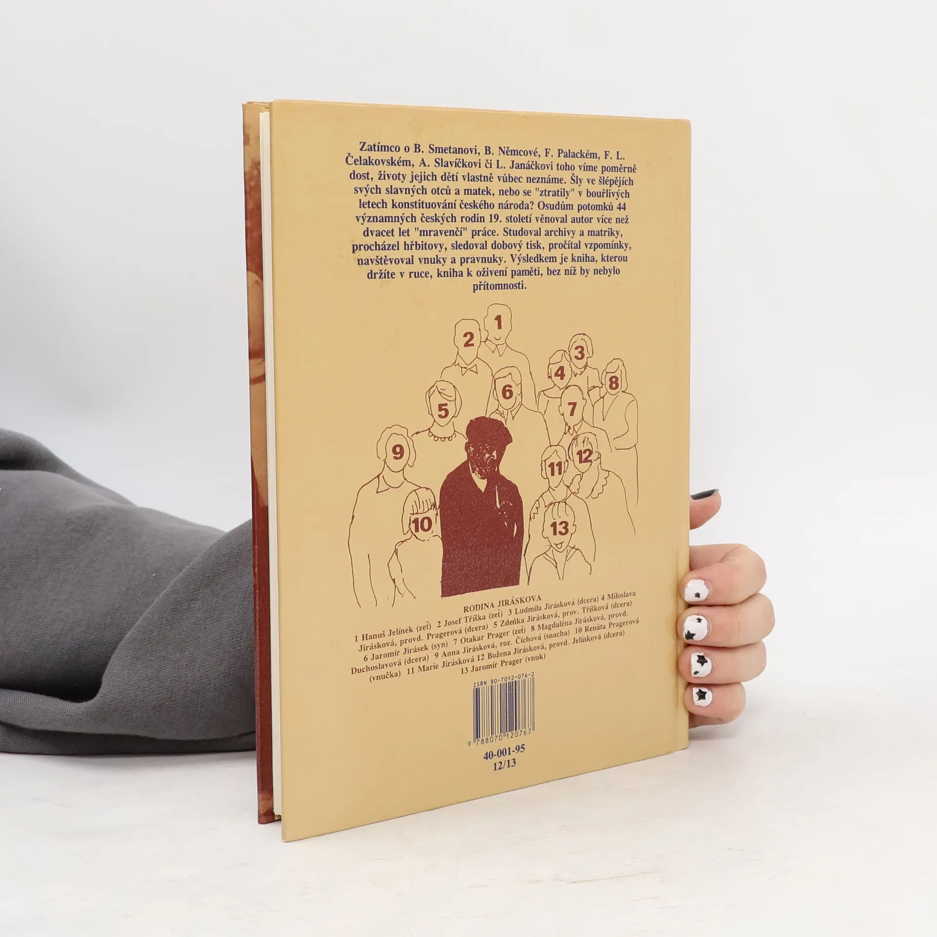 Zatímco o B. Smetanovi, B. Němcové, F. Palackém, F. L. Čelakovském, A. Slavíčkovi či L. Janáčkovi toho víme poměrně dost, životy jejich dětí vlastně vůbec neznáme. Šly ve šlépějích svých slavných otců a matek, nebo se "ztratily" v bouřlivých letech konstituování českého národa? Osudům potomků 44 významných českých rodin 19. století věnoval autor více než dvacet let "mravenčí" práce. Studoval archivy a matriky, procházel hřbitovy, sledoval dobový tisk, pročítal vzpomínky, navštěvoval vnuky a pravnuky. Výsledkem je kniha, kterou držíte v ruce, kniha k oživení paměti, bez níž by nebylo přítomnosti.