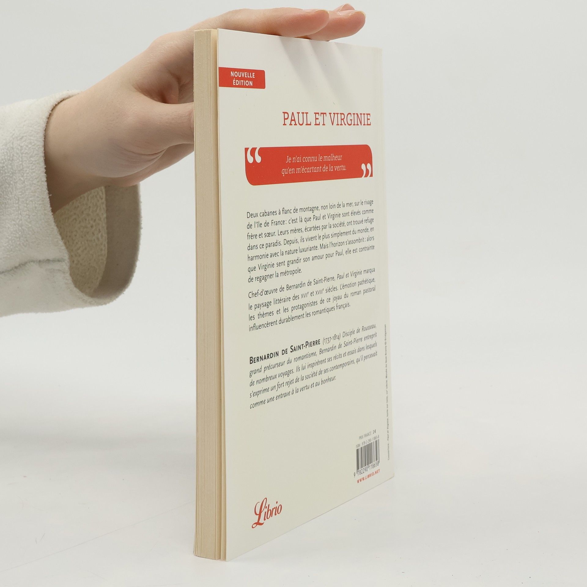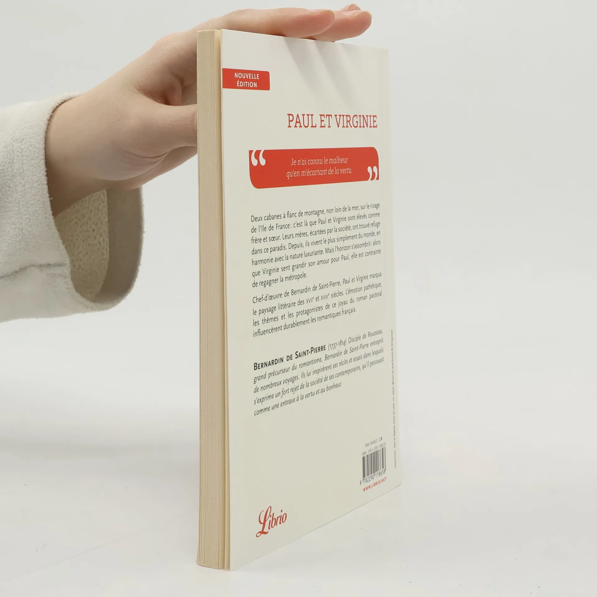 Deux cabanes à flanc de montagne, non loin de la mer, sur le rivage de l'île de France : c'est là que Paul et Virginie sont élevés comme frère et sœur. Leurs mères, écartées par la société, ont trouvé refuge dans ce paradis. Depuis, ils vivent le plus simplement du monde, en harmonie avec la nature luxuriante. Mais l'horizon s'assombrit : alors que Virginie sent grandir son amour pour Paul, elle est contrainte de regagner la métropole. Chef-d’œuvre de Bernardin de Saint-Pierre, Paul et Virginie marqua le paysage littéraire des XVIIe et XVIIIe siècles. L'émotion pathétique, les thèmes et les protagonistes de ce joyau du roman pastoral influencèrent durablement les romantiques français. «Je n'ai connu le malheur qu'en m'écartant de la vertu.»