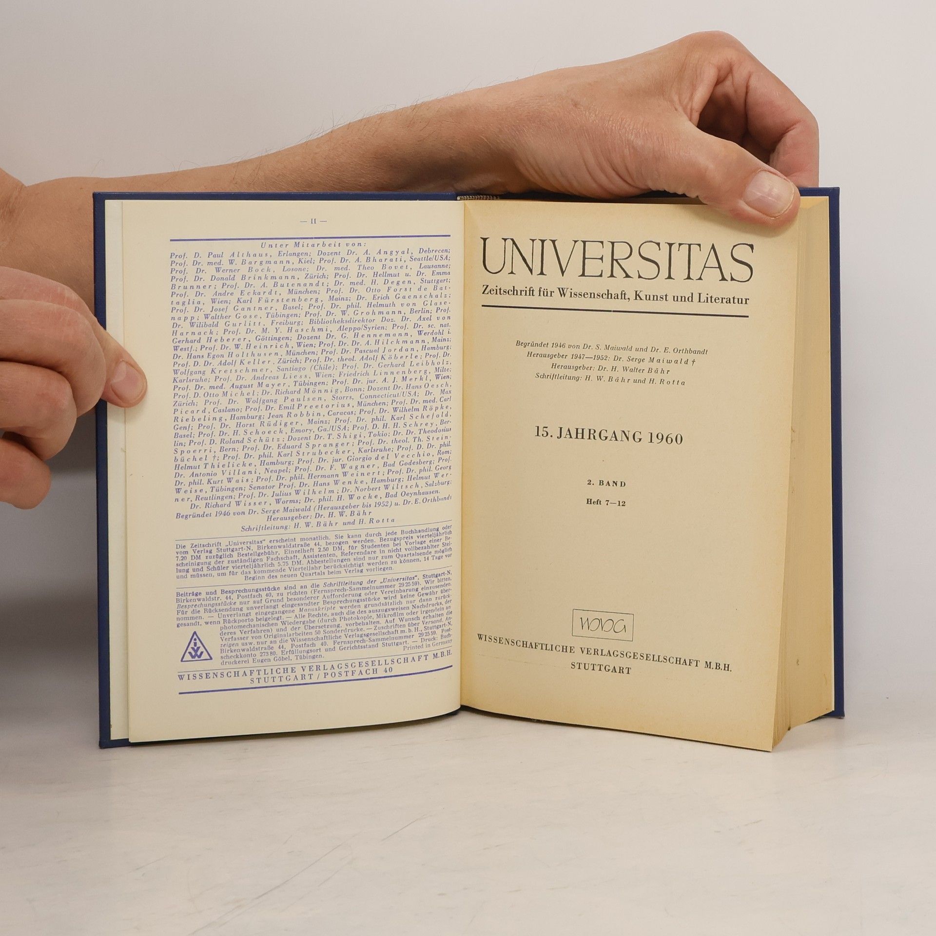 Universitas 15. Jahrgang 1960. 2. Band. Heft 7-12, Collectif d'auteurs