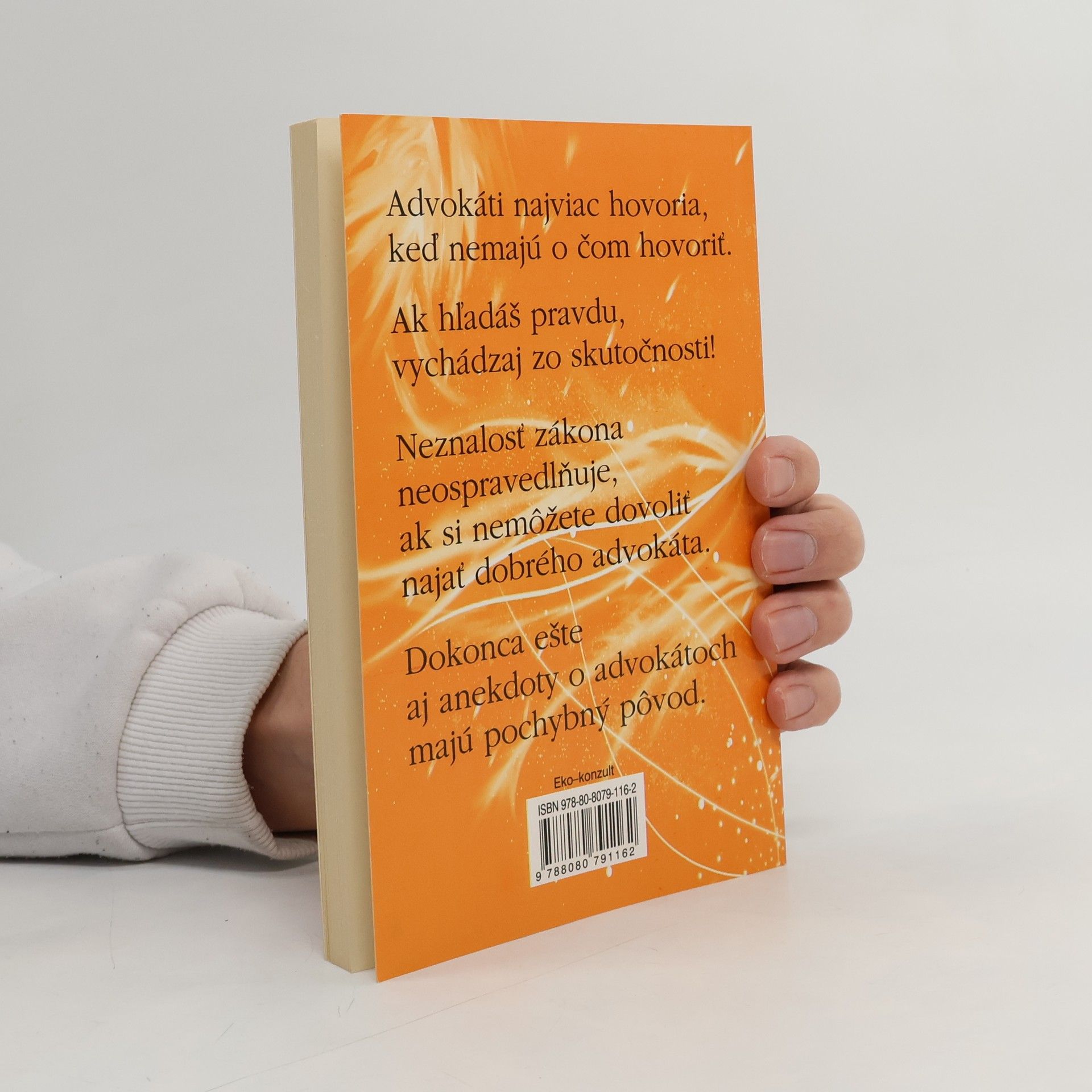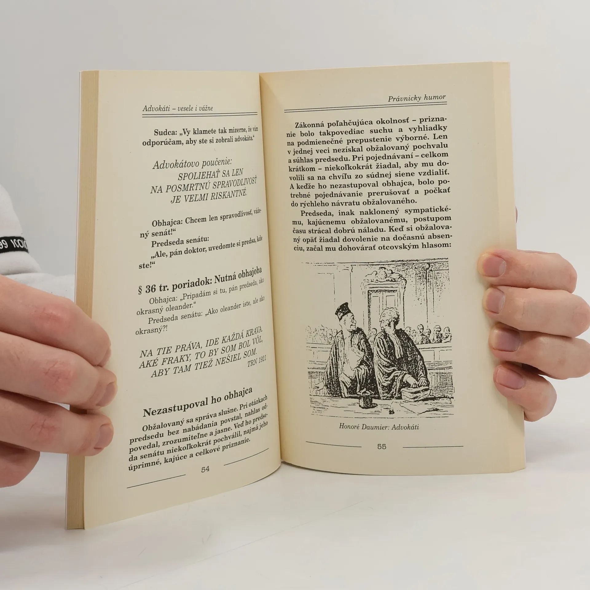 Humor je tak starý ako je staré i ľudstvo. Okrem zachovalých ústnych a písomných záznamov tento fakt potvrdzuje už P. Ovidius. Dočítate sa o advokátskom humore, v ktorom je niekedy skryté zúfalstvo, o sudcoch a práve, falšovaní peňazí, rozvodoch a o vraždách, podvodoch, cudzoložstve, úplatkárstve, zločinoch a znásilneniach. O tom všetkom sa píše veselo i vážne. Čo to sa dočítate i z histórie advokácie a súdnictva.
