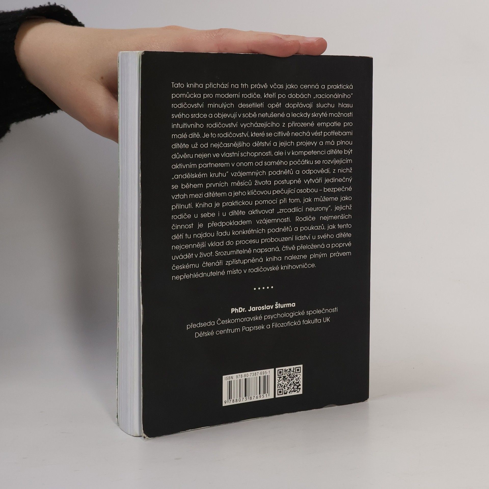 Tato kniha přichází na trh právě včas jako cenná a praktická pomůcka pro moderní rodiče, kteří po dobách „racionálního“ rodičovství minulých desetiletí opět dopřávají sluchu hlasu svého srdce a objevují v sobě netušené a leckdy skryté možnosti intuitivního rodičovství vycházejícího z přirozené empatie pro malé dítě. Je to rodičovství, které se citlivě nechá vést potřebami dítěte už od nejčasnějšího dětství a jejich projevy a má plnou důvěru nejen ve vlastní schopnosti, ale i v kompetenci dítěte být aktivním partnerem v onom od samého počátku se rozvíjejícím „andělském kruhu“ vzájemných podnětů a odpovědí, z nichž se během prvních měsíců života postupně vytváří jedinečný vztah mezi dítětem a jeho klíčovou pečující osobou – bezpečné přilnutí. Kniha je praktickou pomocí při tom, jak můžeme jako rodiče u sebe i u dítěte aktivovat „zrcadlící neurony“, jejichž činnost je předpokladem vzájemnosti. Rodiče nejmenších dětí tu najdou řadu konkrétních podnětů a poukazů, jak tento nejcennější vklad do procesu probouzení lidství u svého dítěte uvádět v život. Srozumitelně napsaná, čtivě přeložená a poprvé českému čtenáři zpřístupněná kniha nalezne plným právem nepřehlédnutelné místo v rodičovské knihovničce.
