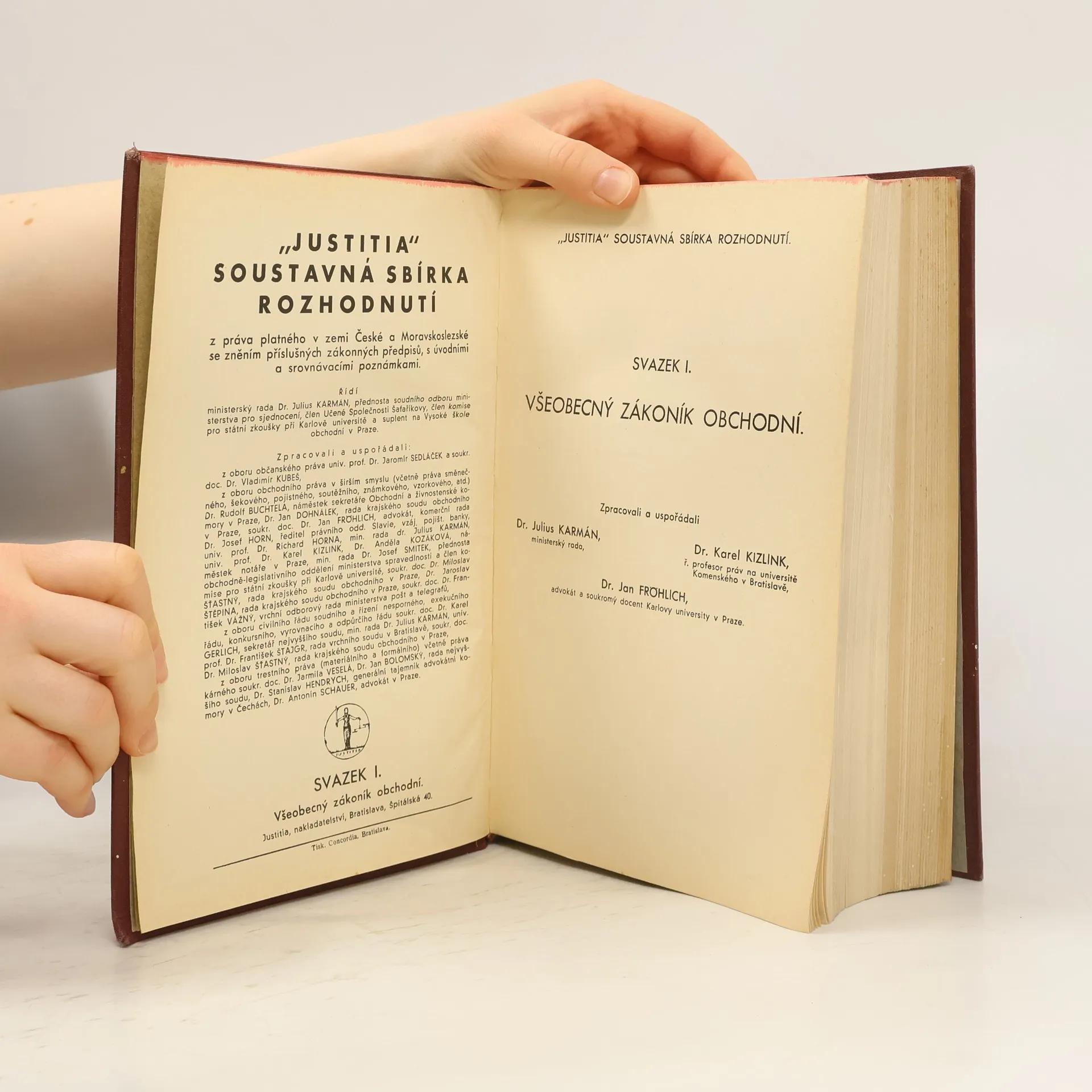 Justitia : soustavná sbírka rozhodnutí. Svazek I., Všeobecný zákoník obchodní, Karel Kizlink, Jan Fröhlich, Julius Karmán