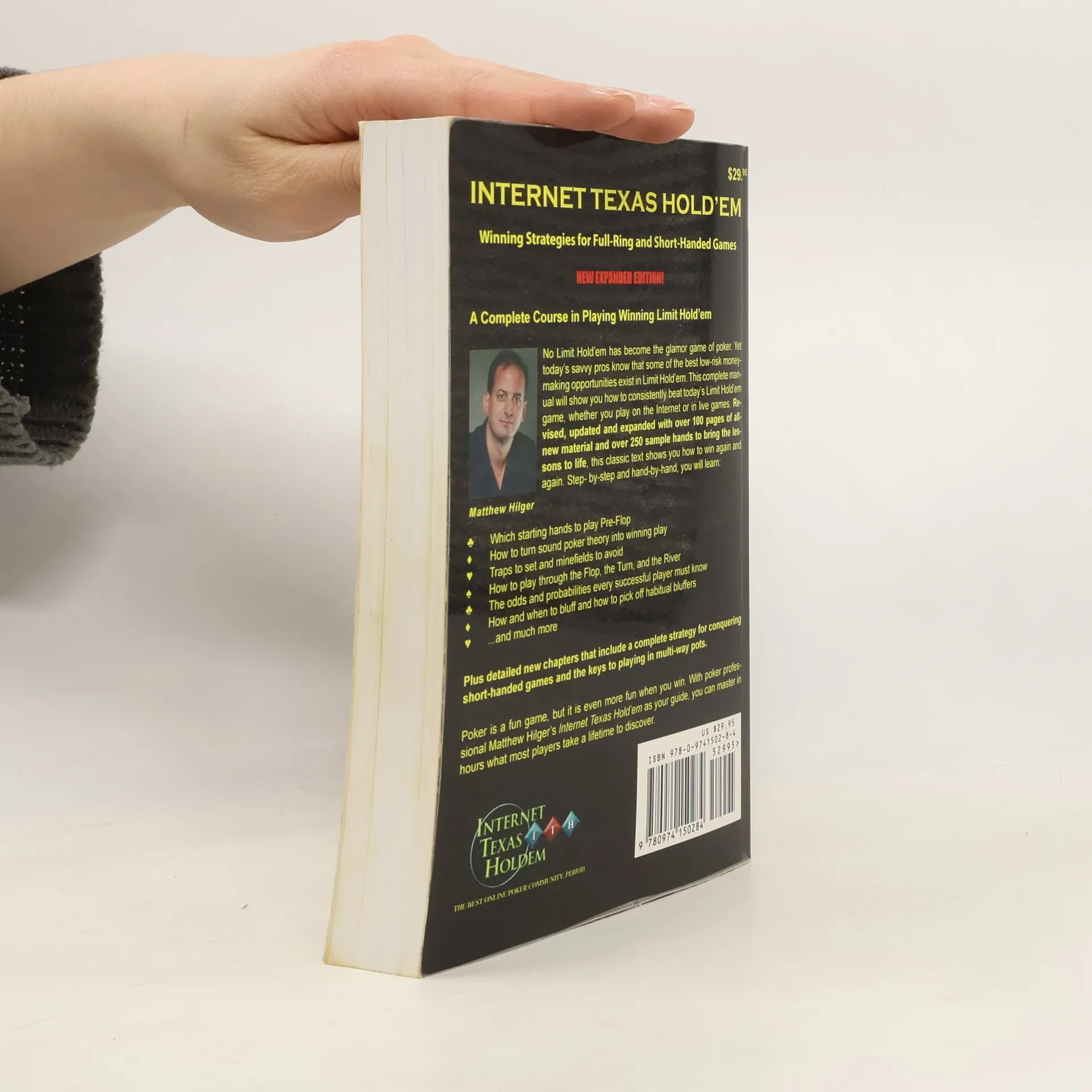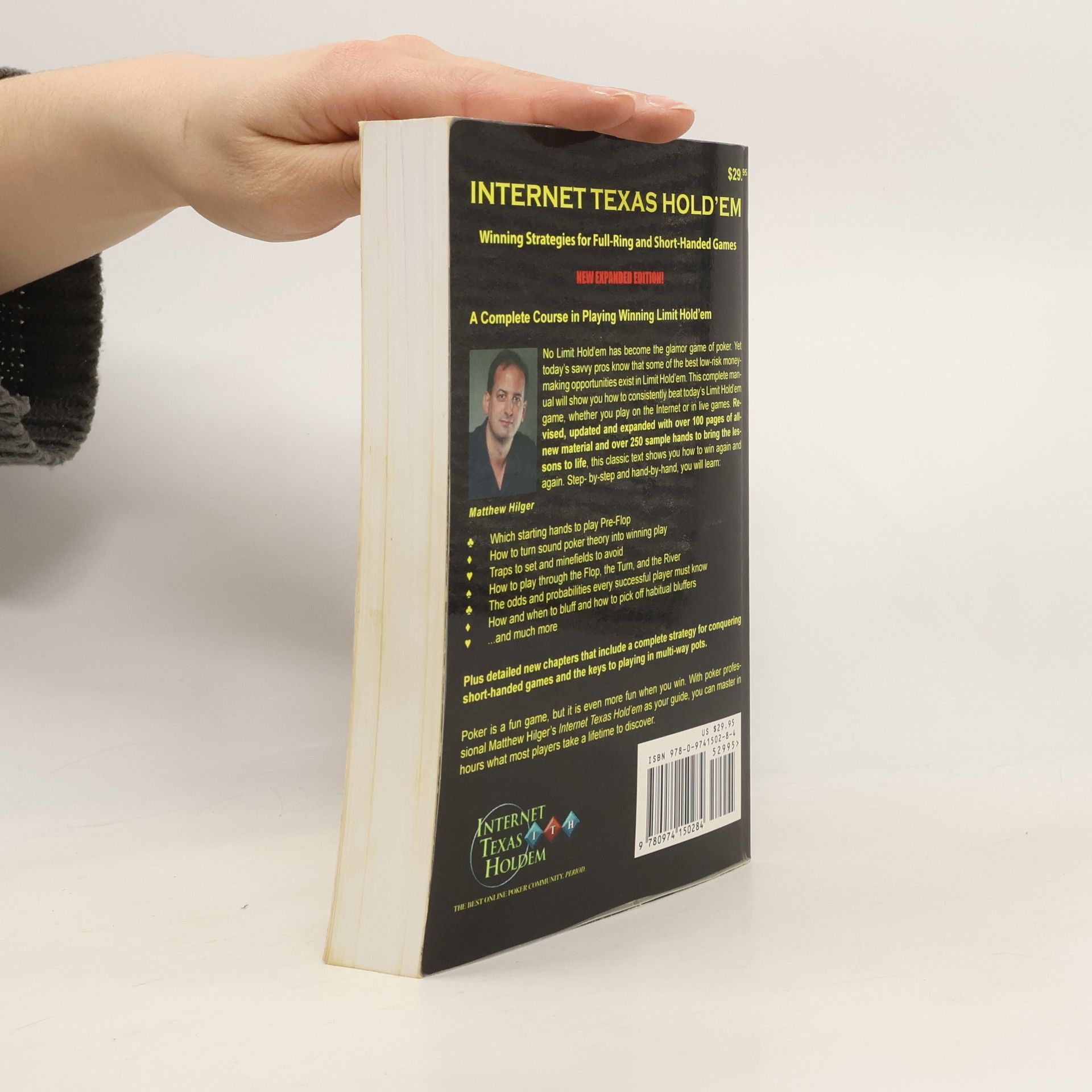 EXPANDED NEW EDITION!A Complete Course in Playing Winning Limit Hold’emNo Limit Hold’em has become the glamor game of poker. Yet today's savvy pros know that some of the best low-risk money-making opportunities exist in Limit Hold’em. This complete manual will show you how to consistently beat today's Limit Hold’em game, whether you play on the Internet or in live games. Revised, updated and expanded with over 100 pages of all-new material and over 250 sample hands to bring the lessons to life, this classic text shows you how to win again and again. Step-by-step and hand-by-hand, you will Which starting hands to play Pre-Flop- How to turn sound poker theory into winning play- Traps to set and minefields to avoid- How to play through the Flop, the Turn, and the River- The odds and probabilities every successful player must know- How and when to bluff and how to pick off habitual bluffers- ...and much morePlus detailed new chapters that include a complete strategy for conquering short-handed games and the keys to playing in multi-way pots.Poker is a fun game, but it is even more fun when you win. With poker professional Matthew Hilger's Internet Texas Hold 'em as your guide, you can master in hours what most players take a lifetime to discover.