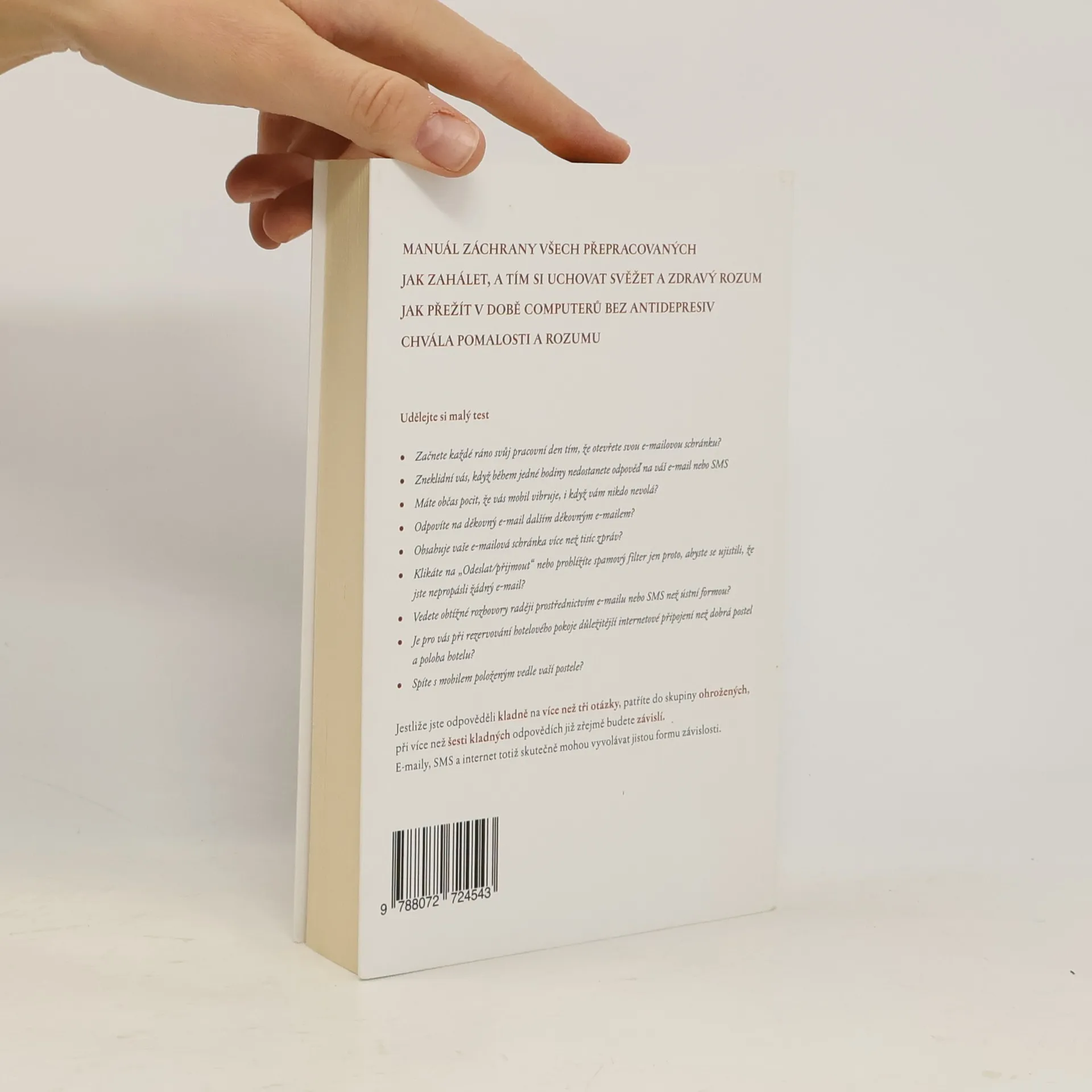 Manuál záchrany všech přepracovaných, přegooglovaných, přefacebookovaných, přecomputerovaných, přemobilovaných a přemailovaných, tedy nás všech, kterým život protéká skrze prsty nikoli prožitky nýbrž daty, které mizí kdesi v nenávratnu spolu s naším štěstím. Jak zahálet a tím si uchovat svěžet a zdravý rozum. Jak přežít v době computerů bez antidepresiv. Chvála pomalosti a rozumu. 1. vydání.