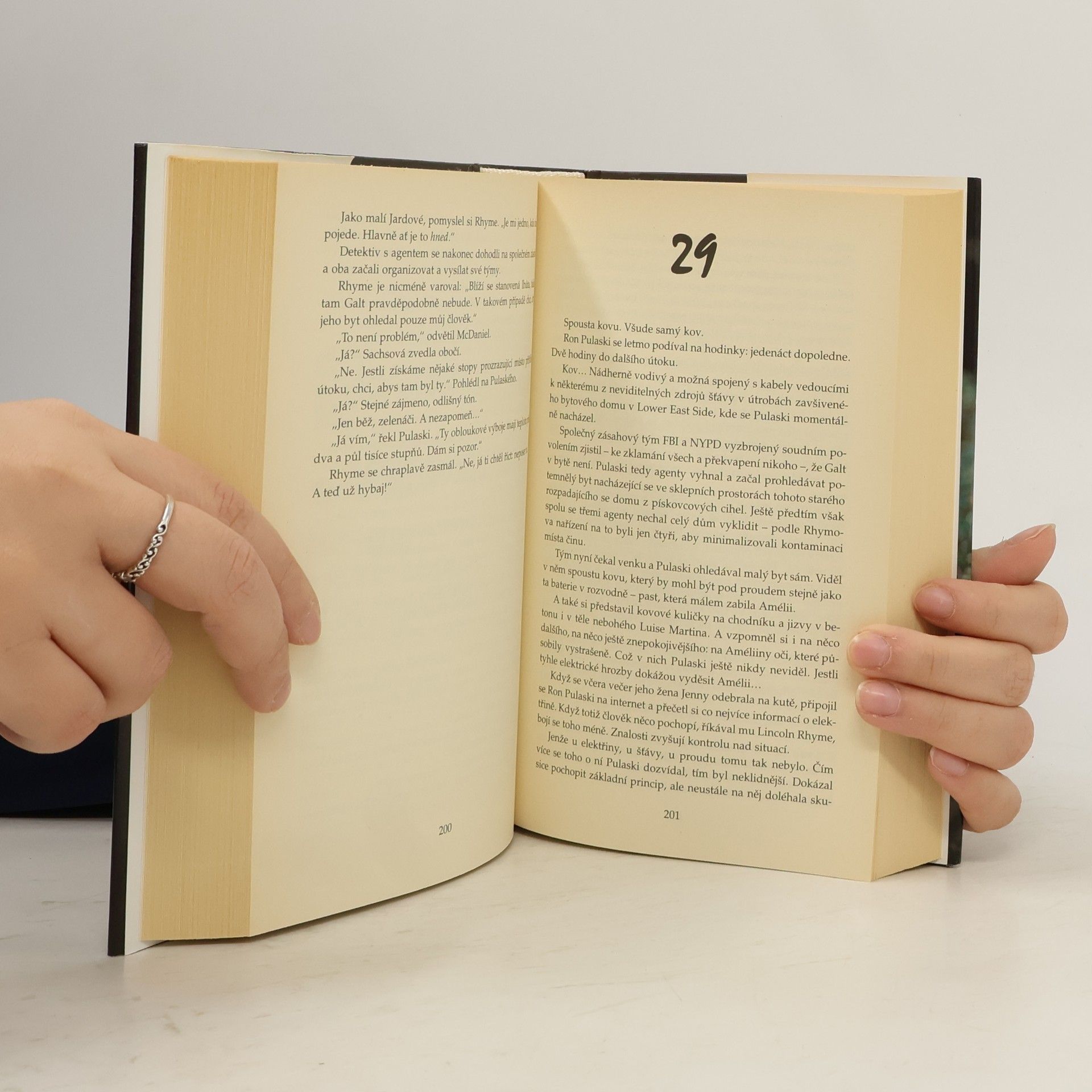 Je to zbraň neviditelná a současně všudepřítomná, bez níž by moderní společnost nemohla existovat: elektrická rozvodná síť. Vrah využívá obrovských a přesně mířených obloukových výbojů s tak vysokým napětím a teplotou, že se při ní taví ocel a lidé začínají hořet. V jiném případě zase vrah přehodí pár drátků a náhle může být vražedným nástrojem vana, počítačová klávesnice nebo obyčejná stolní lampa… První strašlivý útok, při němž se autobus městské hromadné dopravy proměnil v hromadu roztaveného kovu, považovali oficiální činitelé za teroristický útok. K vyšetřování byl okamžitě přizván Lincoln Rhyme, který i tentokrát vysílá do terénu Amélii Sachsovou a Rona Pulaského. Zatímco se útoky zběsilým tempem šíří po celém městě a na policii začínají docházet vyděračské dopisy, tým kriminalistů bojuje s časem a snaží se na základě minima důkazů dopadnout vraha. Anebo je vrahů víc…? Už tak složitou situaci ještě více komplikuje fakt, že Rhyme zároveň působí jako konzultant při vyšetřování dalšího případu, jehož protagonistou je muž s přezdívkou Hodinář – jeden z mála padouchů, jimž se kdy podařilo z Rhymovy sítě uniknout.