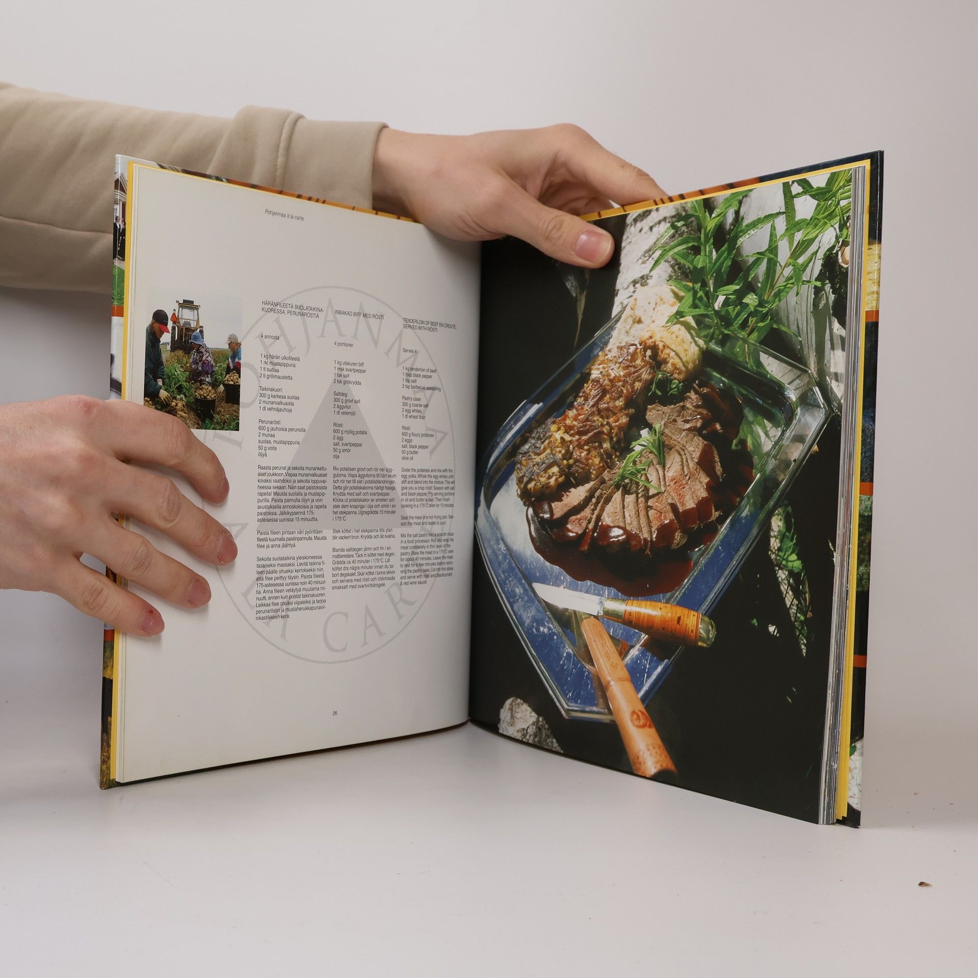 Pohjanmaa à la carte -kirja on ruokamatka Etelä-Pohjanmaalta Keski-Pohjanmaalle. Kirja esittelee samalla kolme maakuntaa; Pohjanmaan Etelä-Pohjanmaan ja Keski-Pohjanmaan. Mukana on paljon tietoa ruokakulttuurista ja monia hyviä pohjalaisia reseptejä. Kirja löytyy monentasoisia reseptejä alkaen perunamuusin valmistamisesta ja päätyen esimerkiksi moniin tyrniherkkuihin. Kirja keskittyy perinneruokien valmistuksen lisäksi Pohjanmaan parhaiden keittiömestareiden salaisuuksiin. Languages: Suomi, Svenska, English/Finnish, Swedish & English