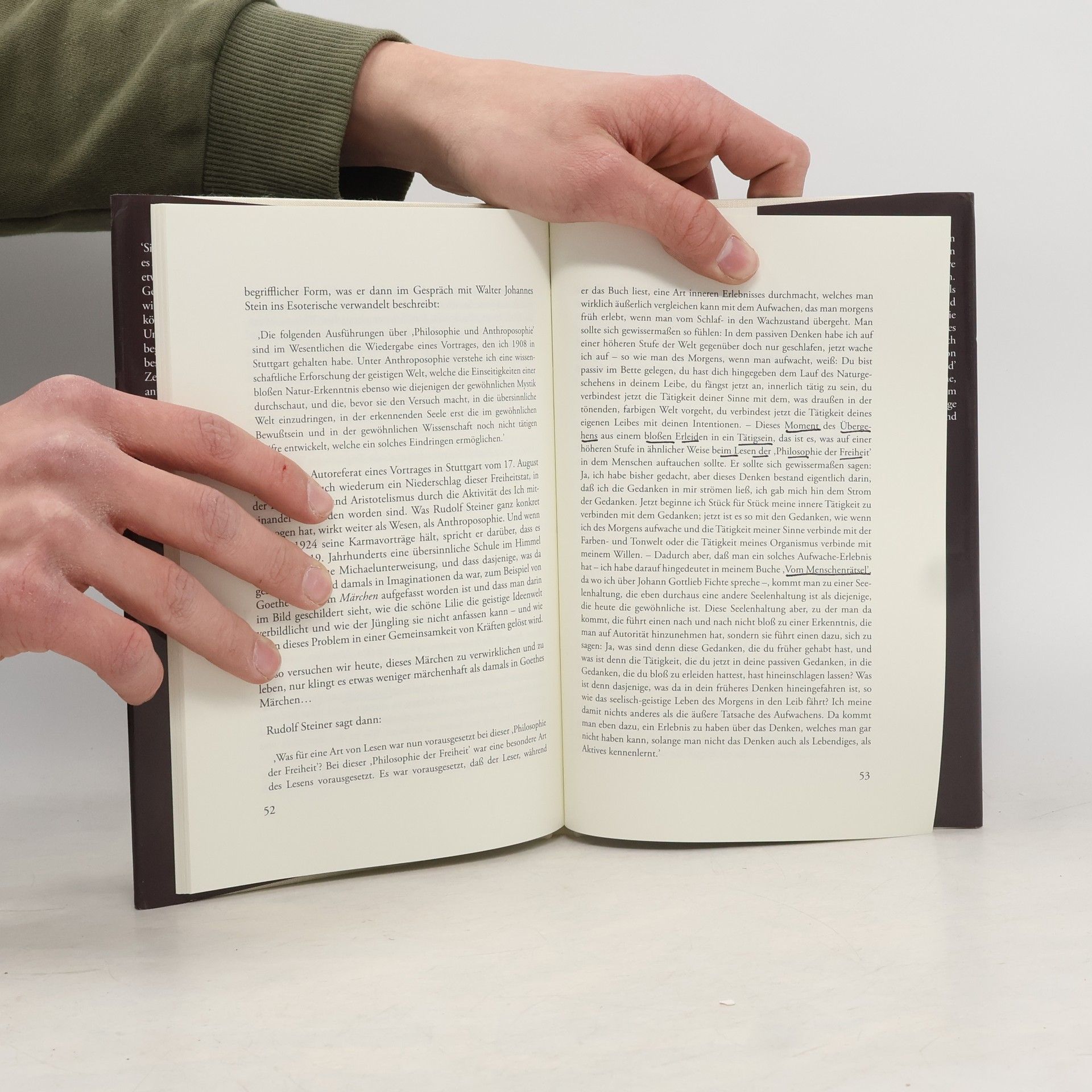 'Sie werden wohl wissen, dass so, wie ich es sehe, die anthroposophische Bewegung etwas ganz von der Anthroposophischen Gesellschaft Verschiedenes ist und dass wir in unserer Zeit nicht mehr sagen können, dass die beiden vereinigt sind. Und ich werde versuchen, das heute zu begründen, aber eigentlich vor allem zu beschreiben, was für mich im Lauf der Zeit ganz deutlich geworden ist: das ist anthroposophische Bewegung.'
