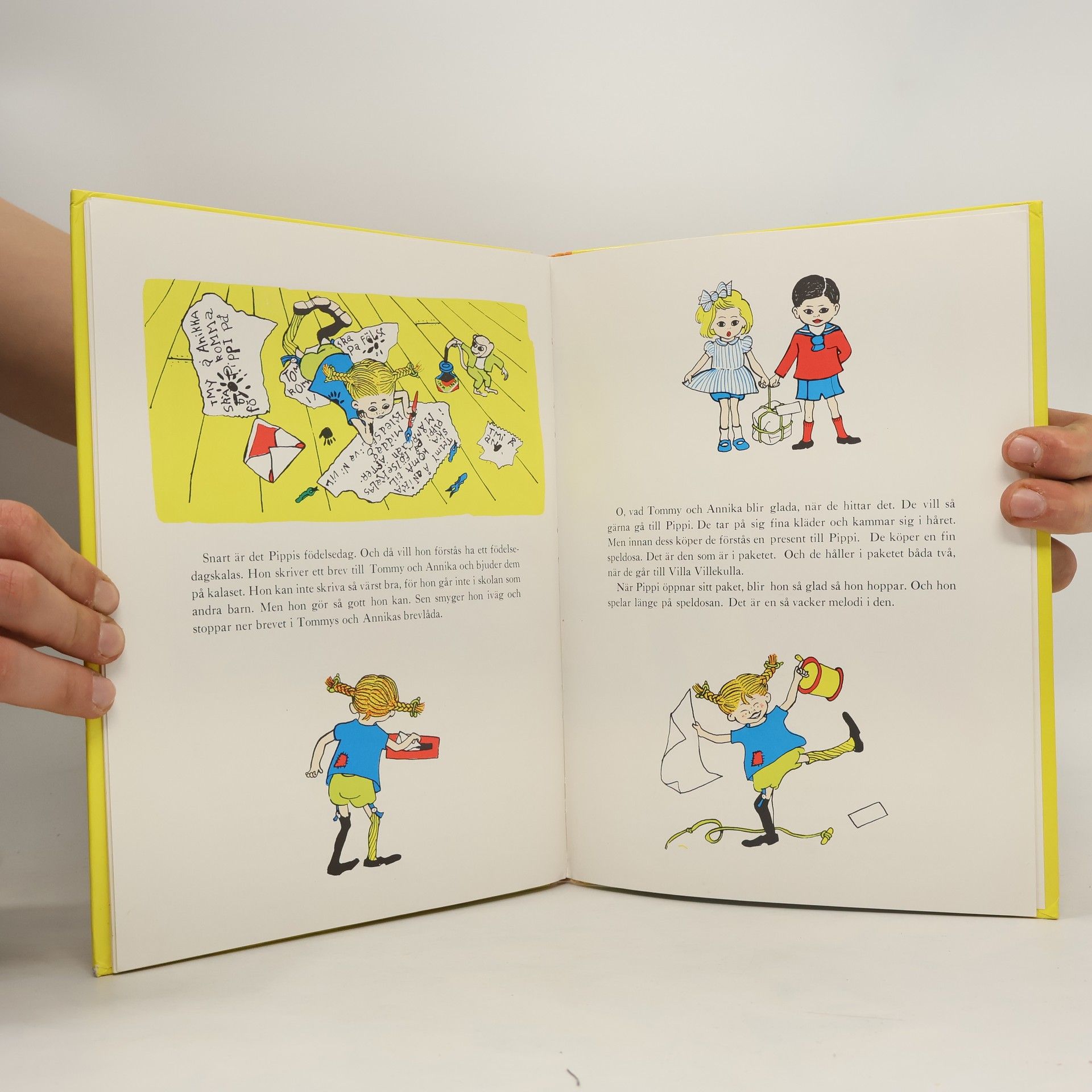 Billedbog i farver med megen tekst om Pippi, den stærkeste pige i verden og fuld af skøre og spændende påfund.