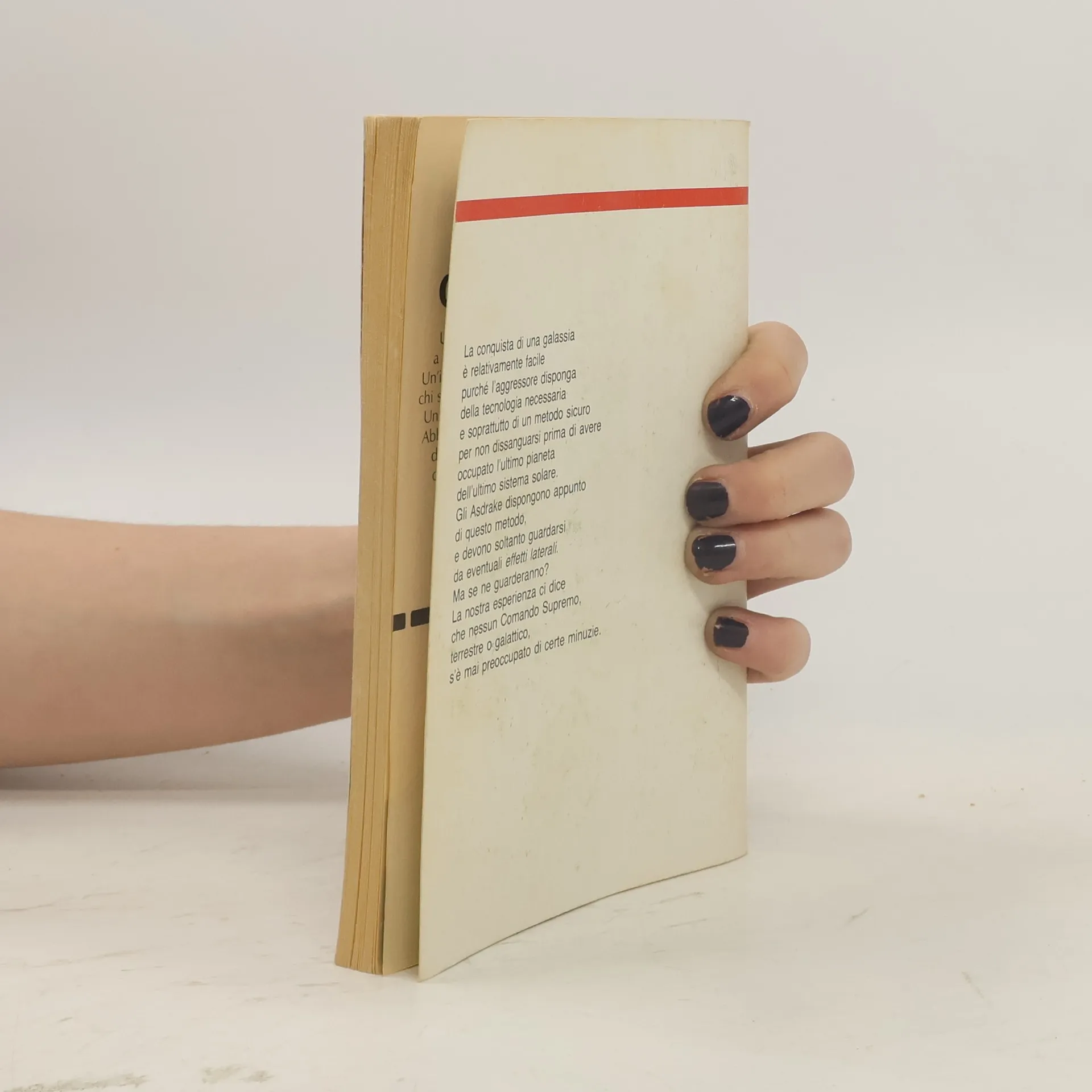 La conquista di una galassia è relativamente facile purché l'aggressore disponga della tecnologia necessaria e soprattutto di un metodo sicuro per non dissanguarsi prima di avere occupato l'ultimo pianeta dell'ultimo sistema solare. Gli Asdrake dispongono appunto di questo metodo, e devono soltanto guardarsi da eventuali effetti laterali. Ma se ne guarderanno? La nostra esperienza ci dice che nessun Comando Supremo, terrestre o galattico, s'è mai preoccupato di certe minuzie. Copertina di Karel Thole