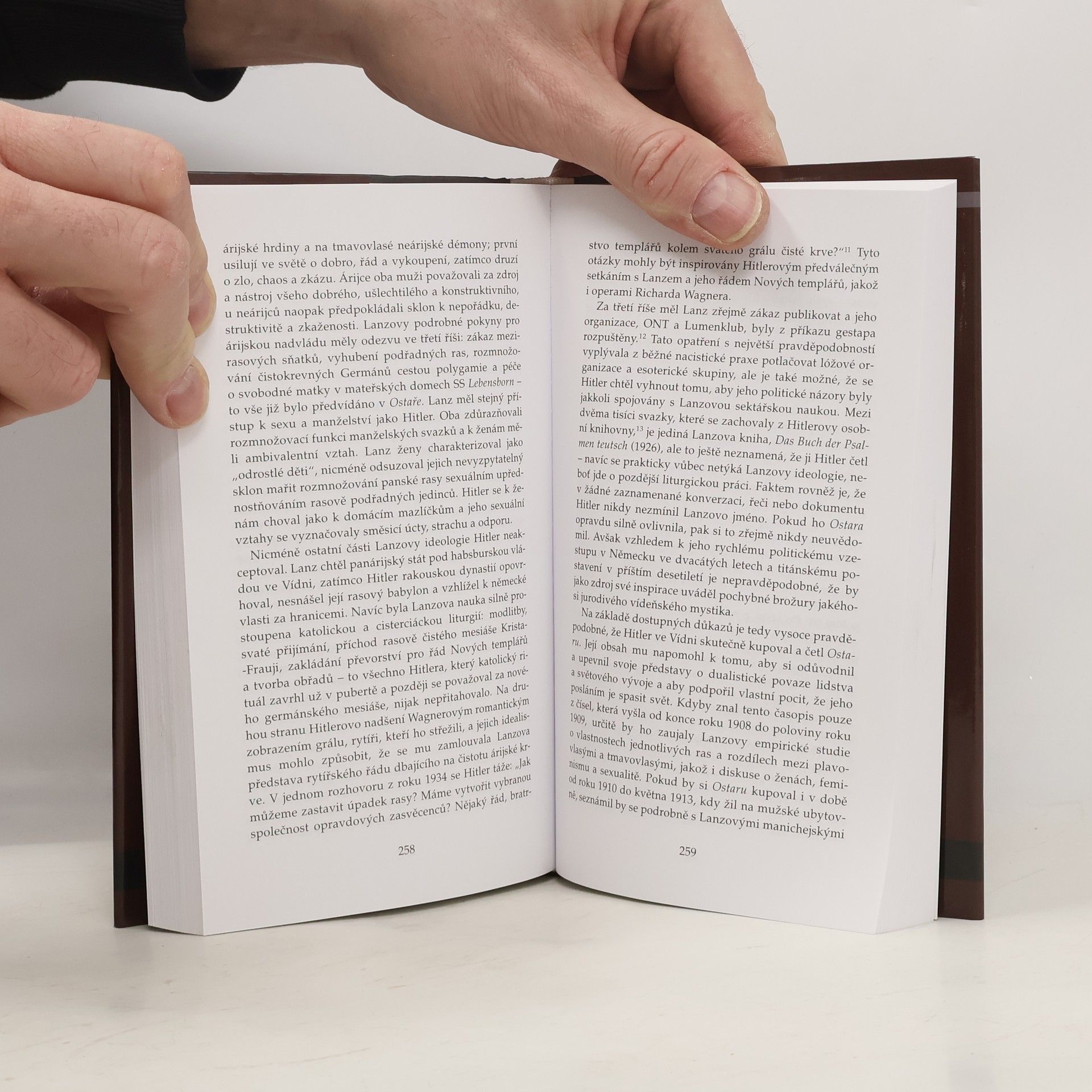 Kniha britského historika Nicholase Goodricka-Clarka se věnuje okultním naukám a pseudoučením, kterými se inspirovali nacističtí vůdcové včetně Adolfa Hitlera a Heinricha Himmlera. Přibližuje životní osudy rakouského romantického spisovatele, excentrického vizionáře a zakladatele armanského řádu Guida von Lista, bývalého cisterciáckého mnicha Jörga Lanze von Liebenfels, zakladatele ariosofie a vydavatele časopisu Ostara, mezi jehož čtenáře patřil za svého vídeňského pobytu i Hitler. Ukazuje také vliv dalších okultistů na vznik a vzestup nacistického hnutí, jakými byli například Karl Maria Wiligut zvaný „Himmlerův Rasputin“ nebo Rudolf von Sebottendorf, zakladatel Společnosti Thule a německý agent v Istanbulu. Podrobně popisuje historii řádového hradu SS Wewelsburg, Germánského řádu a vznik pangermánského hnutí. Ačkoli se tato kniha zabývá především okultní historií nacismu, je nesmírně aktuální, protože si všímá reakcí tzv. obyčejných lidí na společensko-ekonomické změny a jejich hledání nějakého jednoduchého návodu k jejich pochopení. A ten i dnes, stejně jako na přelomu 19. a 20. století, nacházejí také v nacionalismu. Autor svoje zasvěcené dílo uzavírá myšlenkami, že v dnešní době sílícího vlivu náboženského fundamentalismu různých směrů může porozumění okultním kořenům nacismu přispět k tomu, že se tento svět stane bezpečnějším.