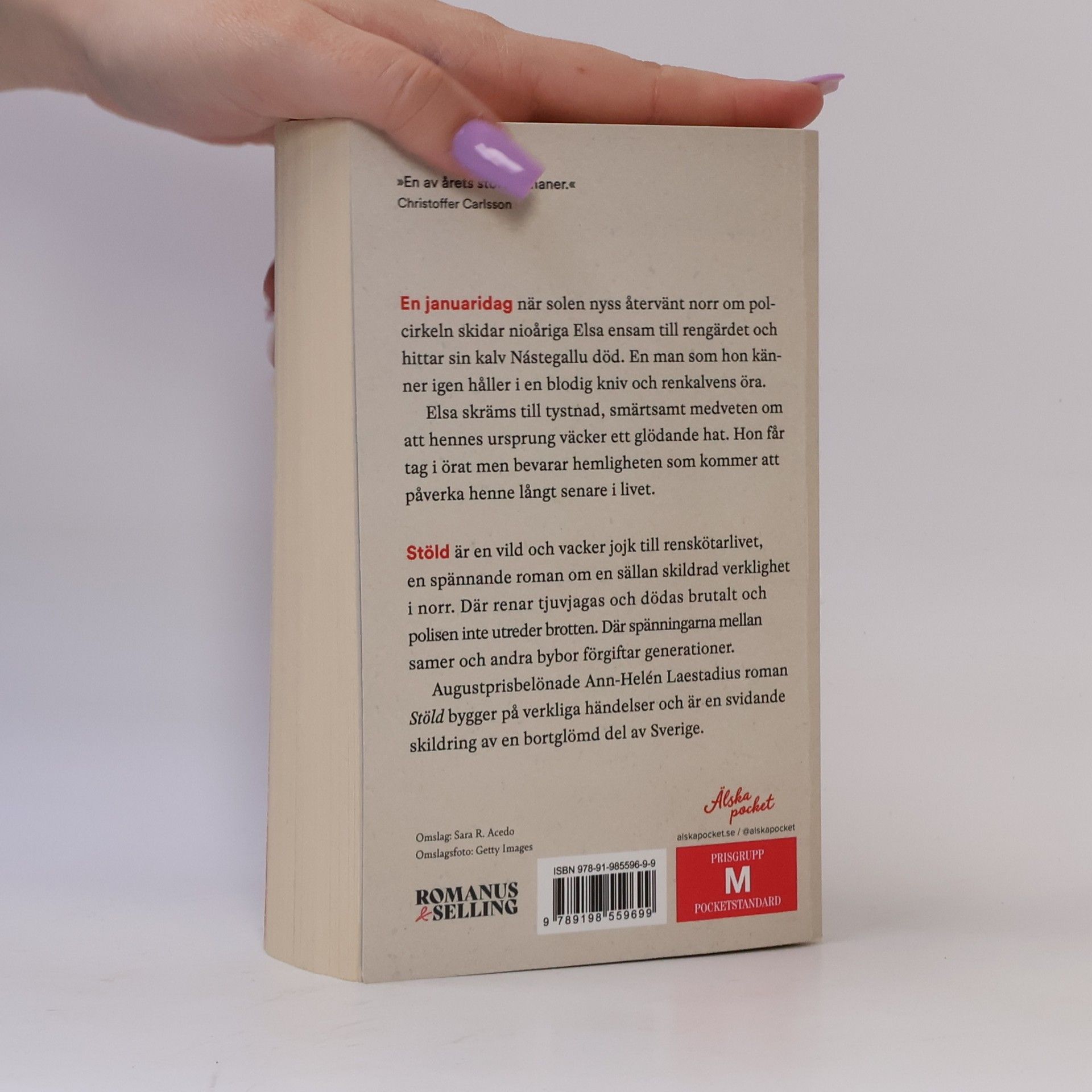 Vinnare av Årets Bok 2021!Som nioåring blir renskötardottern Elsa vittne till hur en man dödar en av hennes renar. Hon hotas till tystnad och blir smärtsamt medveten om att hennes ursprung väcker ett glödande hat."Stöld" är en vild och vacker jojk till renskötarlivet, men också en spännande roman om en sällan skildrad verklighet i norr. Där renar tjuvjagas och dödas brutalt och polisen inte utreder brotten. Där spänningarna mellan samer och andra bybor förgiftar generationer.Hotet mot Elsa förändrar henne för alltid och genom åren bär hon med sig ett lent renöra som en ständig påminnelse. Familjen och släkten kämpar för rättvisa men i det tysta växer en desperation.Augustprisbelönade Ann-Helén Laestadius första roman för vuxna bygger på verkliga händelser. "Stöld" är en varm men samtidigt svidande skildring av en bortglömd del av Sverige där människor ställs mot varandra.