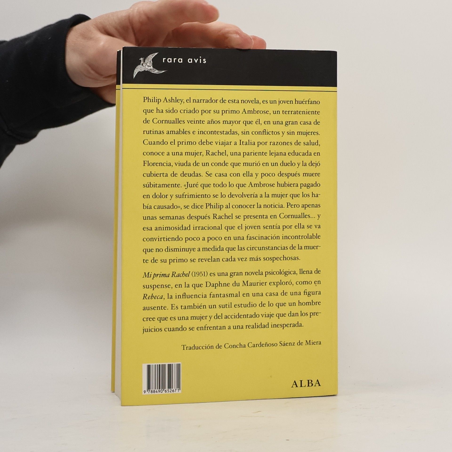 Philip Ashley, el narrador de esta novela, es un joven huérfano que ha sido criado por su primo Ambrose, un terrateniente de Cornualles veinte años mayor que él, en una gran casa aislada, de rutinas amables e incontestadas, sin conflictos y sin mujeres. Cuando el primo debe viajar a Italia por razones de salud, conoce a una mujer, Rachel, una pariente lejana educada en Florencia, viuda de un conde que murió en un duelo y la dejó cubierta de deudas. Se casa con ella y poco después muere súbitamente. «Juré que todo lo que Ambrose hubiera pagado en dolor y sufrimiento se lo devolvería a la mujer que los había causado», se dice Philip al conocer la noticia. Pero apenas han pasado unas semanas y Rachel se presenta en Cornualles… y esa animosidad irracional que el joven sentía por ella se va convirtiendo poco a poco en una fascinación incontrolable que no disminuye a medida que las circunstancias de la muerte de su primo se revelan cada vez más sospechosas. Mi prima Rachel (1951) es una gran novela psicológica, llena de suspense, en la que Daphne du Maurier exploró, como en Rebeca, la in-fluencia fantasmal en una casa de una figura ausente. Es también un sutil estudio de lo que un hombre cree que es una mujer y del accidentado viaje que dan los prejuicios cuando se enfrentan a una realidad inesperada.