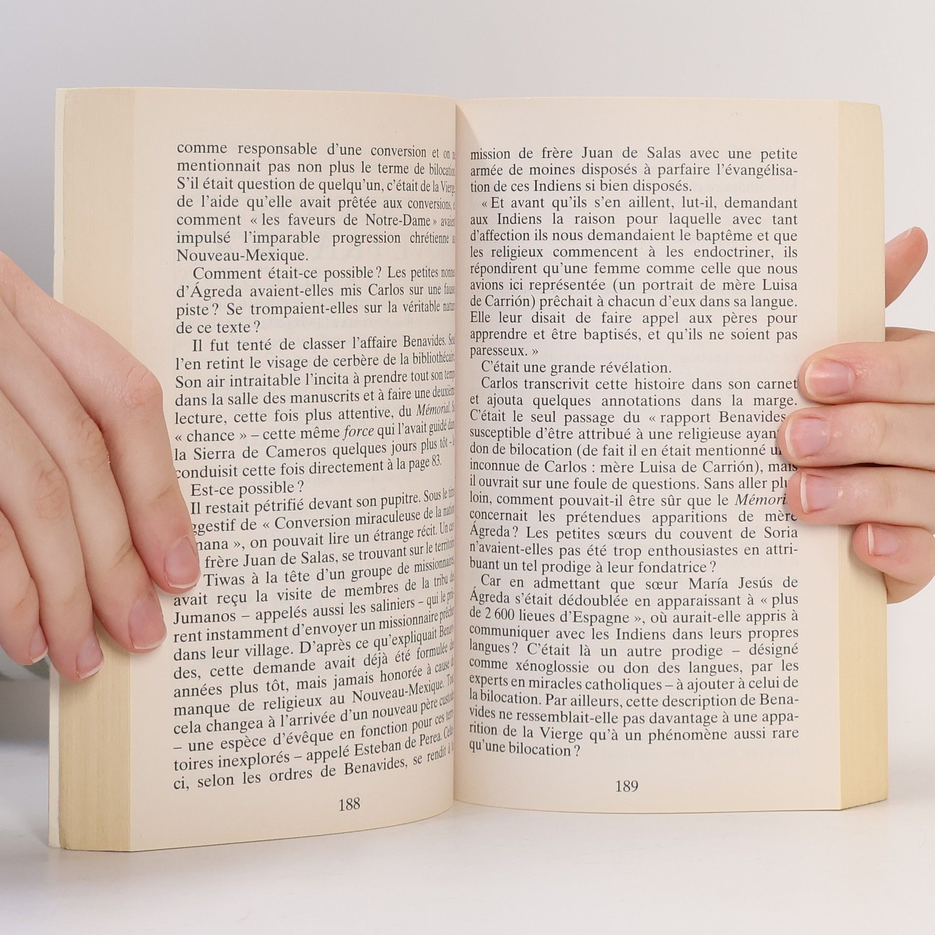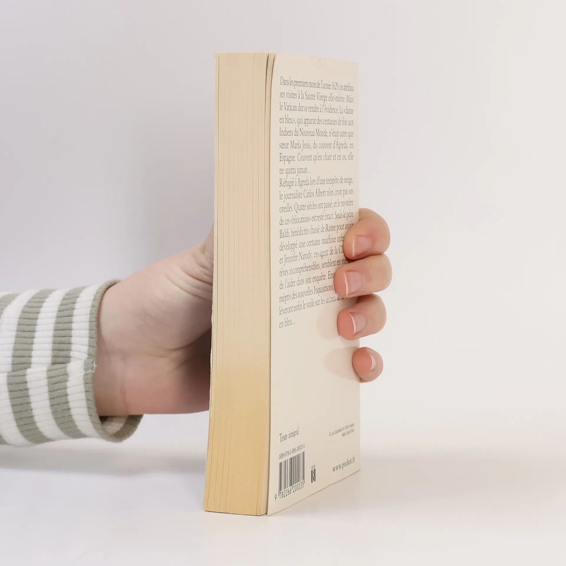 Dans les premiers mois de l'année 1629, on attribua ses visites à la Sainte Vierge elle-même. Mais le Vatican dut se rendre à l'évidence. La " dame en bleu ", qui apparut des centaines de fois aux Indiens du Nouveau Monde, n'était autre que soeur Maria Jesùs, du couvent d'Agreda, en Espagne. Couvent qu'en chair et en os, elle ne quitta jamais... Réfugié à Agreda lors d'une tempête de neige, le journaliste Carlos Albert n'en croit pas ses oreilles. Quatre siècles ont passé, et le mystère de ces " bilocations " est resté intact. Seuls le père Baldi, bénédictin chassé de Rome pour avoir développé une certaine machine infernale, et Jennifer Narody, ex-agent de la CIA aux rêves incompréhensibles, semblent en mesure de l'aider dans son enquête. Ensemble et au mépris des nouvelles Inquisitions, ces " parias " lèveront enfin le voile sur les secrets de la dame en bleu...