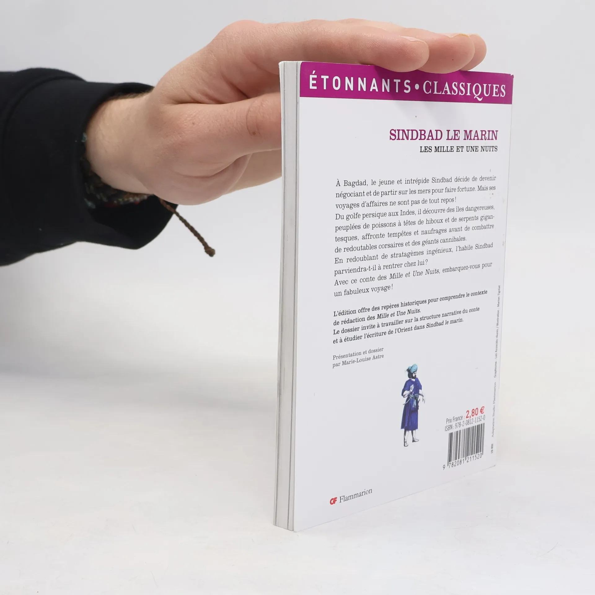 A Bagdad, le jeune et intrépide Sindbad décide de devenir négociant et de partir sur les mers pour faire fortune. Mais ses voyages d'affaires ne sont pas de tout repos ! Du golfe persique aux Indes, il découvre des îles dangereuses, peuplées de poissons à têtes de hiboux et de serpents gigantesques, affronte tempêtes et naufrages avant de combattre de redoutables corsaires et des géants cannibales. En redoublant de stratagèmes ingénieux, l'habile Sindbad parviendra-t-il à rentrer chez lui ? Avec ce conte des Mille et Une Nuits, embarquez-vous pour un fabuleux voyage ! L'édition offre des repères historiques pour comprendre le contexte de rédaction des Mille et Une Nuits. Le dossier invite à travailler sur la structure narrative du conte et à étudier l'écriture de l'Orient dans Sindbad le marin.