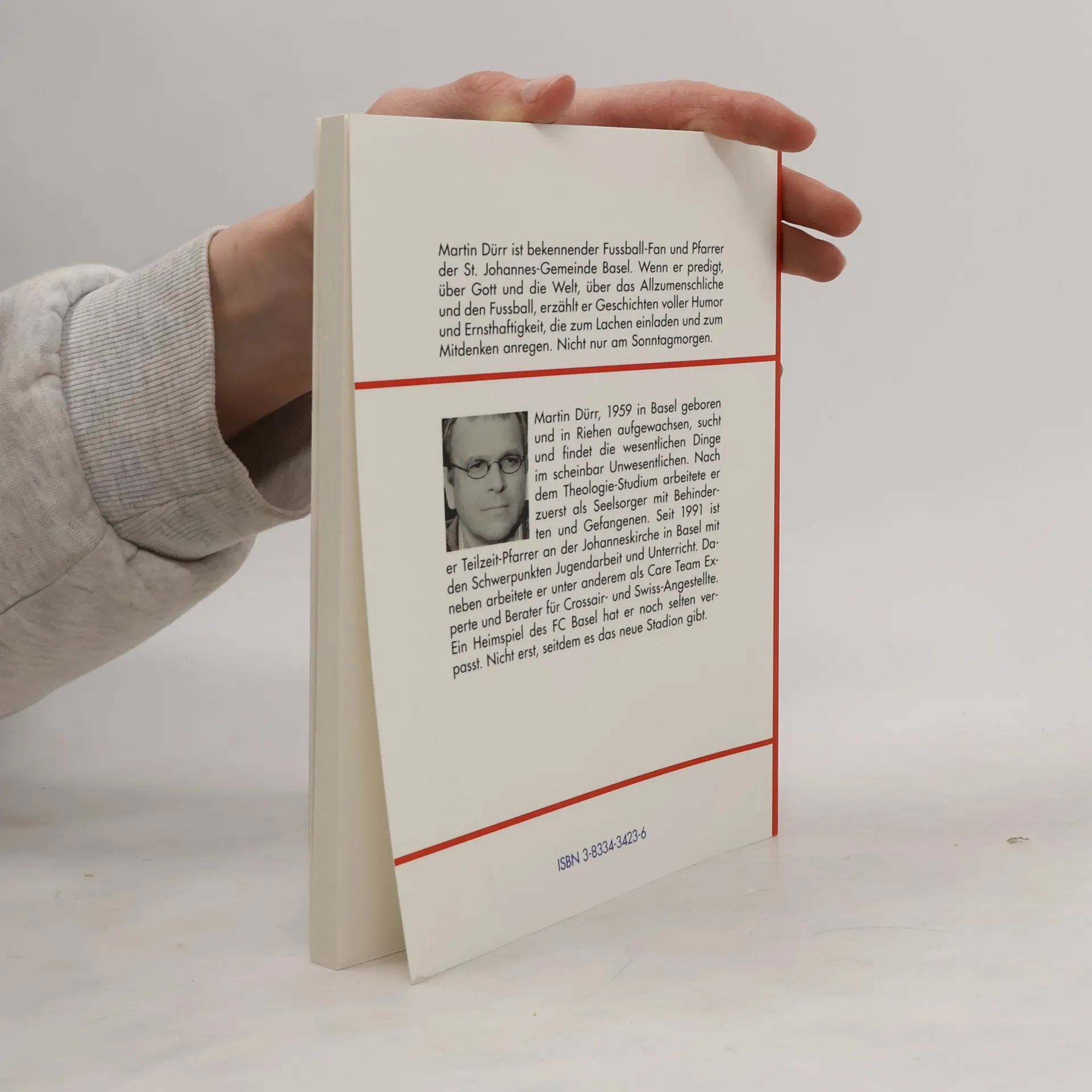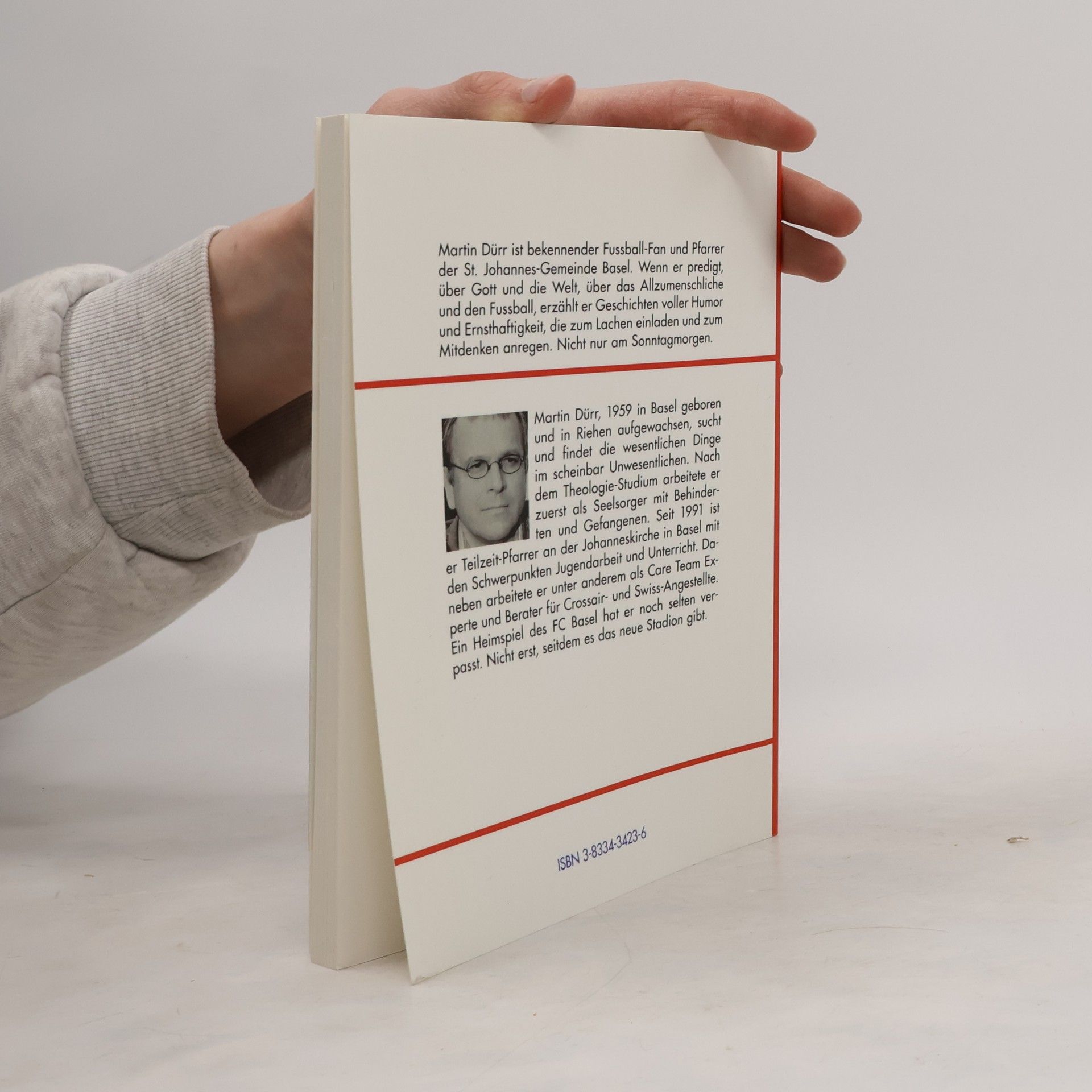 Martin Dürr ist bekennender Fussball-Fan und Pfarrer der St. Johannes-Gemeinde Basel. Wenn er predigt, über Gott und die Welt, über das Allzumenschliche und den Fussball, erzählt er Geschichten voller Humor und Ernsthaftigkeit, die zum Lachen einladen und zum Mitdenken anregen. Nicht nur am Sonntagmorgen.Martin Dürr, 1959 in Basel geboren und in Riehen aufgewachsen, sucht und findet die wesentlichen Dinge im scheinbar Unwesentlichen. Nach dem Theologie-Studium arbeitete er zuerst als Seelsorger mit Behinderten und Gefangenen. Seit 1991 ist er Teilzeit-Pfarrer an der Johanneskirche in Basel mit den Schwerpunkten Jugendarbeit und Unterricht. Daneben arbeitete er unter anderem als Care Team Experte und Berater für Crossair- und Swiss-Angestellte. Ein Heimspiel des FC Basel hat er noch selten verpasst. Nicht erst, seitdem es das neue Stadion gibt.