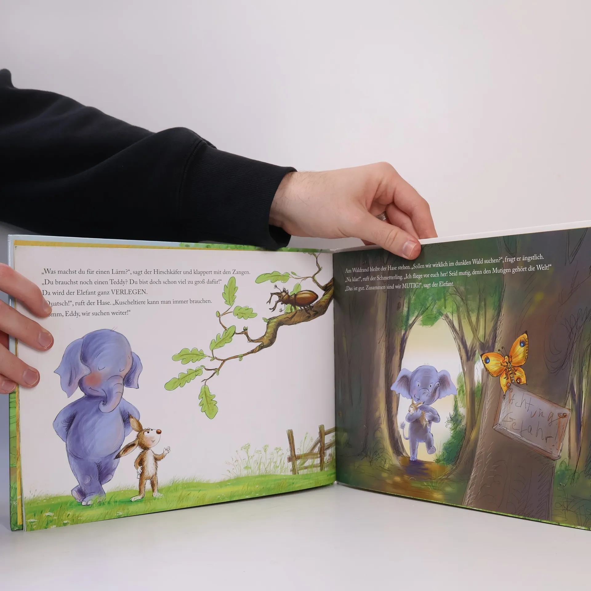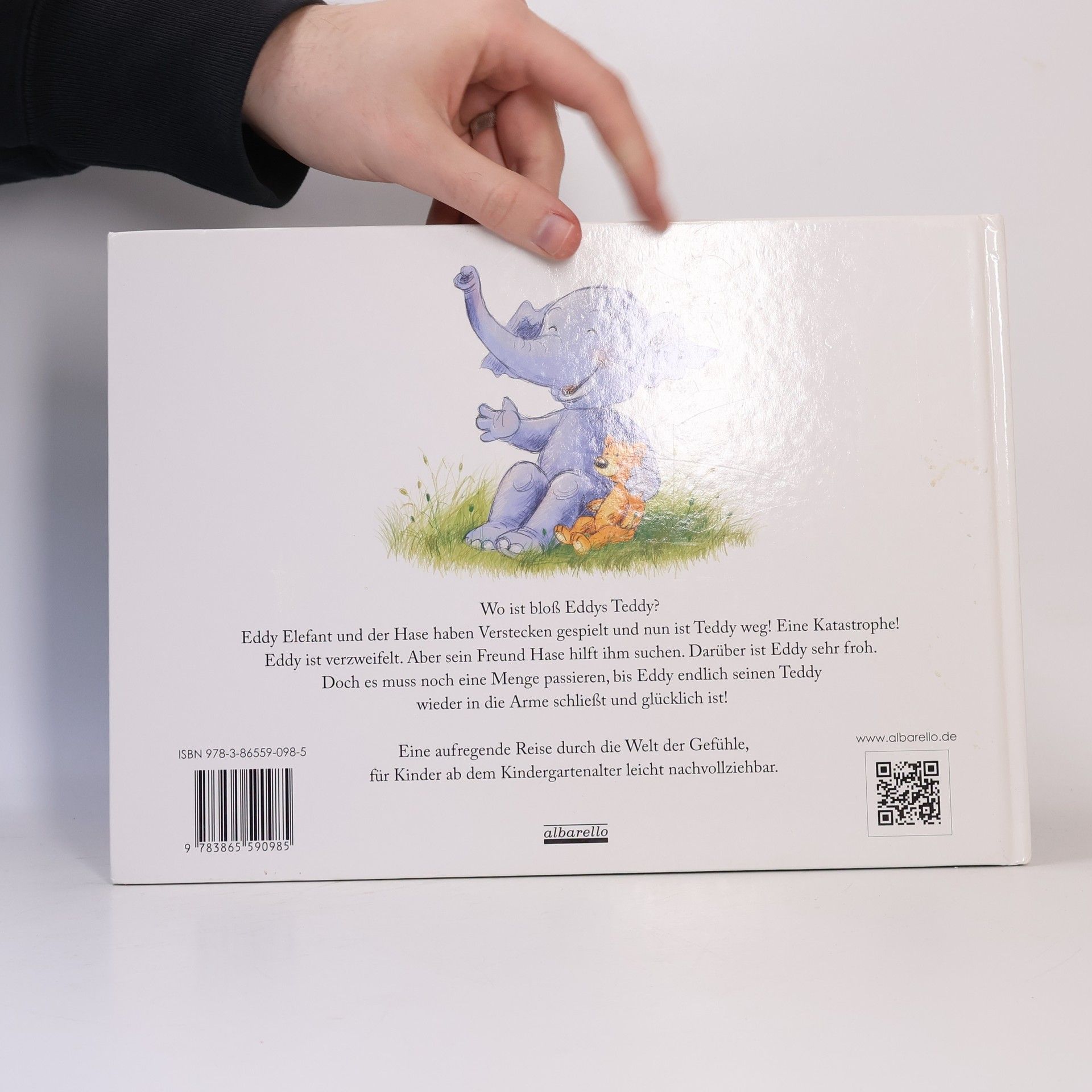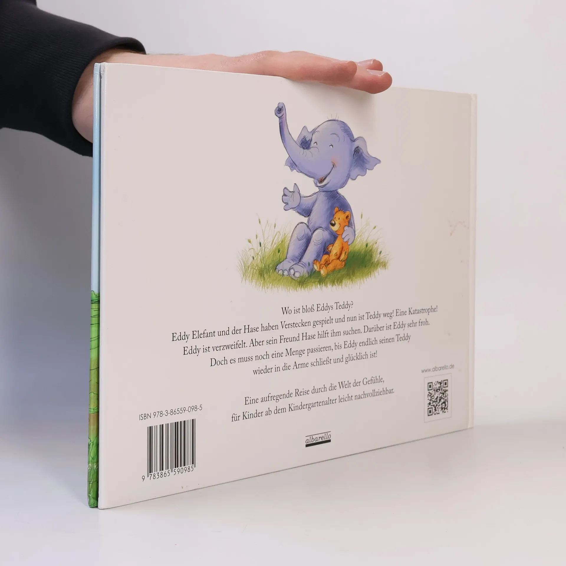Elefant Eddy sucht seinen Teddy und erlebt dabei ein Wechselbad unterschiedlichster Gefühle, immer begleitet von seinem Freund, dem Hasen, der ihm zur Seite steht. Zusammen fragen sie verschiedene Tiere nach dem Teddy und lernen so auch die Gefühle anderer zu erkennen. Für Kinder ist es wichtig, sich über ihre Gefühle klar zu werden. Nur wenn man eigene Gefühle richtig zuordnen kann, kann man diese Gefühle auch bei anderen erkennen. Dieses Buch hilft Kindern ihre Gefühle und Emotionen zu benennen. Erst wenn man seine eigenen Gefühle ‚meistert’, in dem man mit ihnen angemessen umgeht, kann man auch die Gefühle anderer besser einordnen und kompetent reagieren. Diese emotionale Grundkompetenz ist wichtig für den Umgang miteinander. Hierzu eignet sich die Geschichte von Elefant Eddy auf Gefühlsreise ganz besonders.