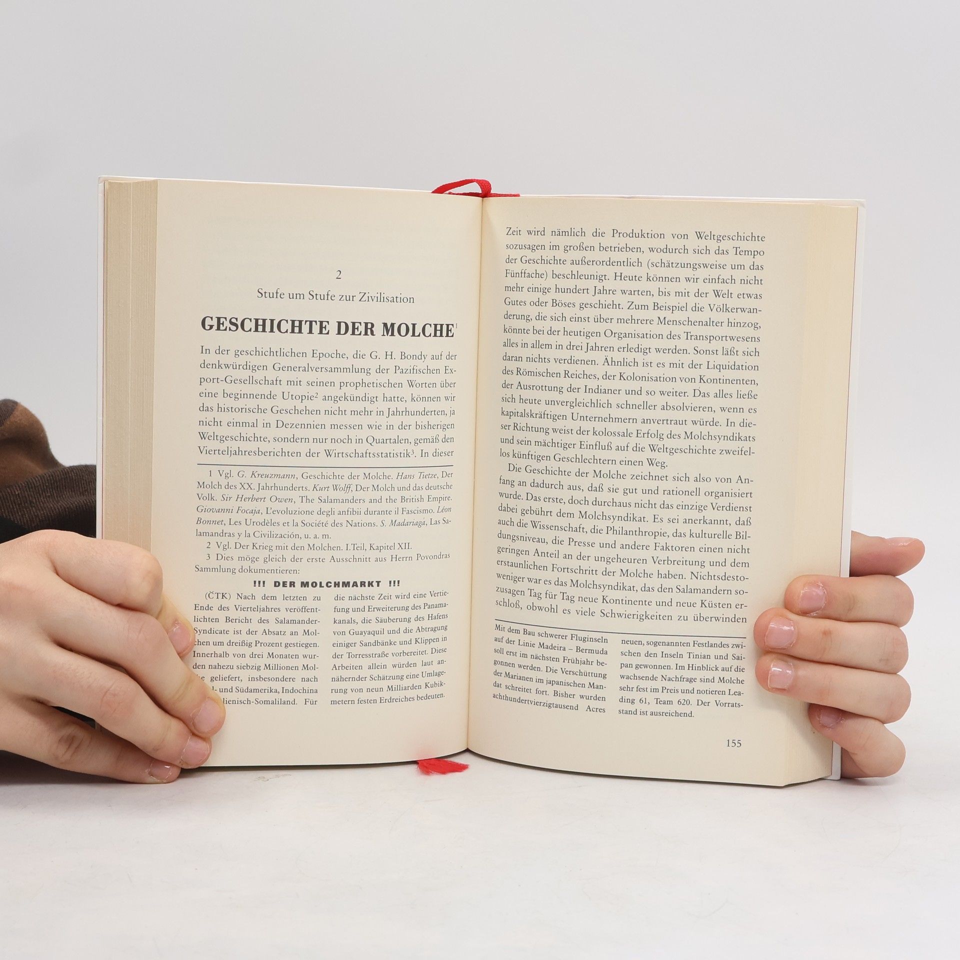 Die brillanteste Satire gegen Fortschritt und Profit Kapitän van Toch entdeckt auf den indonesischen Inseln eine seltsame Molchart, die sich zu allerlei Arbeiten abrichten lässt. Manager wittern ein Riesengeschäft, ein gigantisches »Salamandersyndikat« entsteht. Das Molchzeitalter scheint angebrochen. Doch bald sind die Tiere so clever, dass sie den Spieß umdrehen und ihre einstigen Herren bedrohen. »Lange hat mich keine Erzählung mehr so gefesselt und gepackt. Ihr satirischer Blick für die abgründige Narrheit Europas hat etwas absonderlich Großartiges.« Thomas Mann