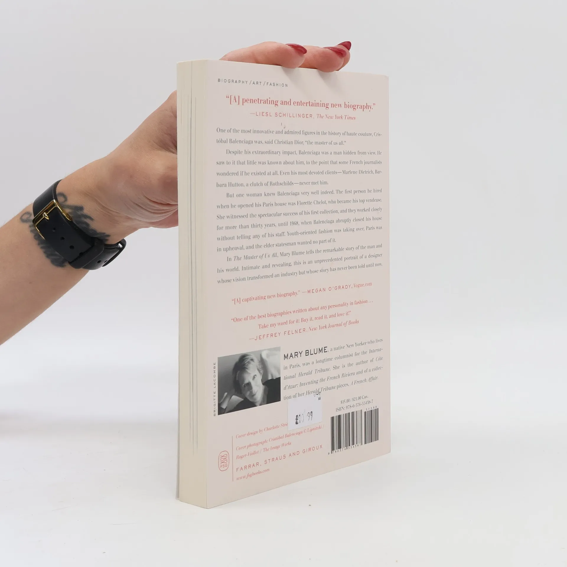 A sparkling life of the monumental fashion designer Cristóbal Balenciaga One of the most innovative and admired figures in the history of haute couture, Cristóbal Balenciaga was, said Christian Dior, "the master of us all." Despite his extraordinary impact, Balenciaga was a man hidden from view. He saw to it that little was known about him, to the point that some French journalists wondered if he existed at all. Even his most devoted clients—Marlene Dietrich, Barbara Hutton, a clutch of Rothschilds—never met him. But one woman knew Balenciaga very well indeed. The first person he hired when he opened his Paris house was Florette Chelot, who became his top vendeuse. She witnessed the spectacular success of his first collection, and they worked closely for more than thirty years, until 1968, when Balenciaga abruptly closed his house without telling any of his staff. Youth-oriented fashion was taking over, Paris was in upheaval, and the elder statesman wanted no part of it. In The Master of Us All, Mary Blume tells the remarkable story of the man and his world. Intimate and revealing, this is an unprecedented portrait of a designer whose vision transformed an industry but whose story has never been told until now.
