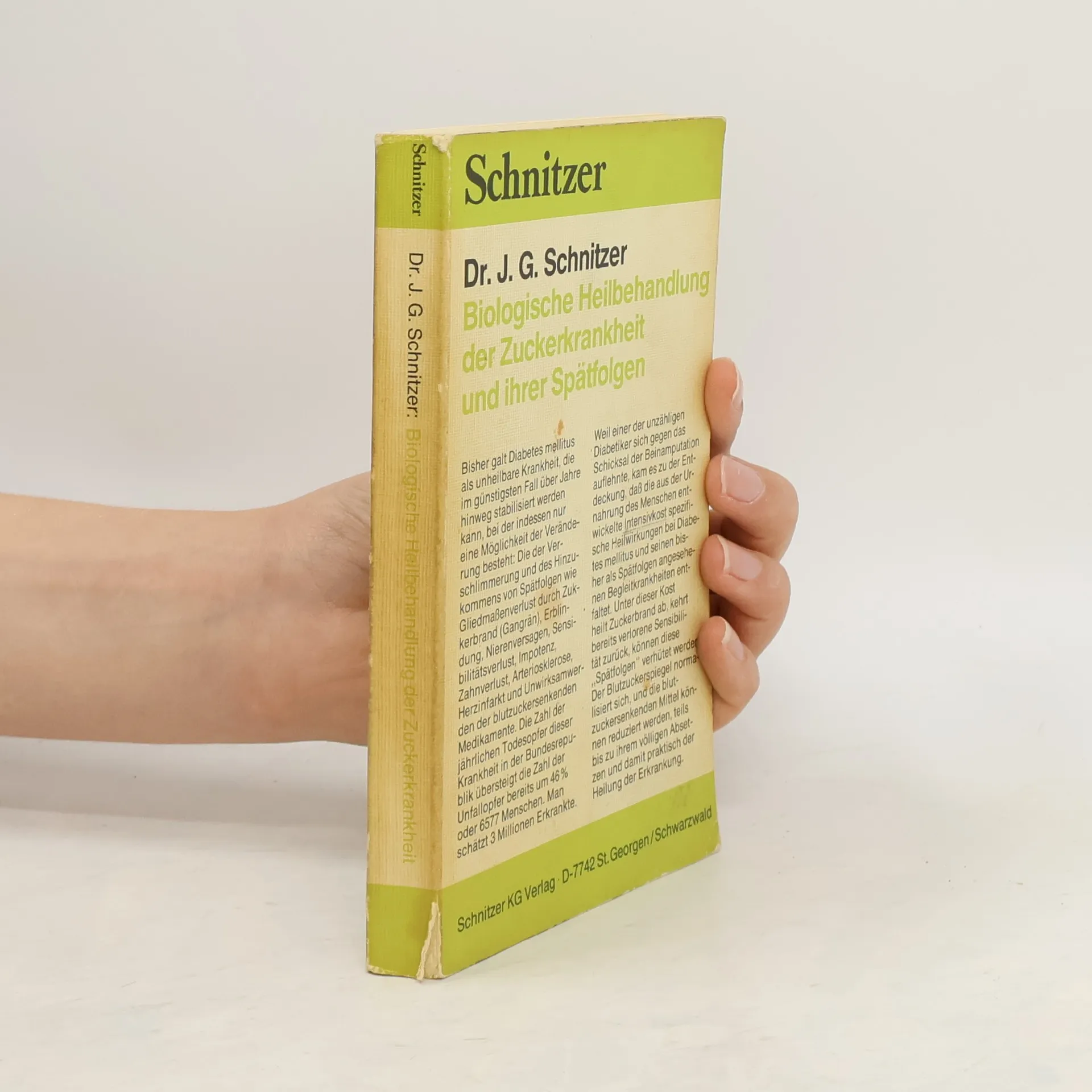 Biologische Heilbehandlung der Zuckerkrankheit und ihrer Spätfolgen, J. G. Schnitzer