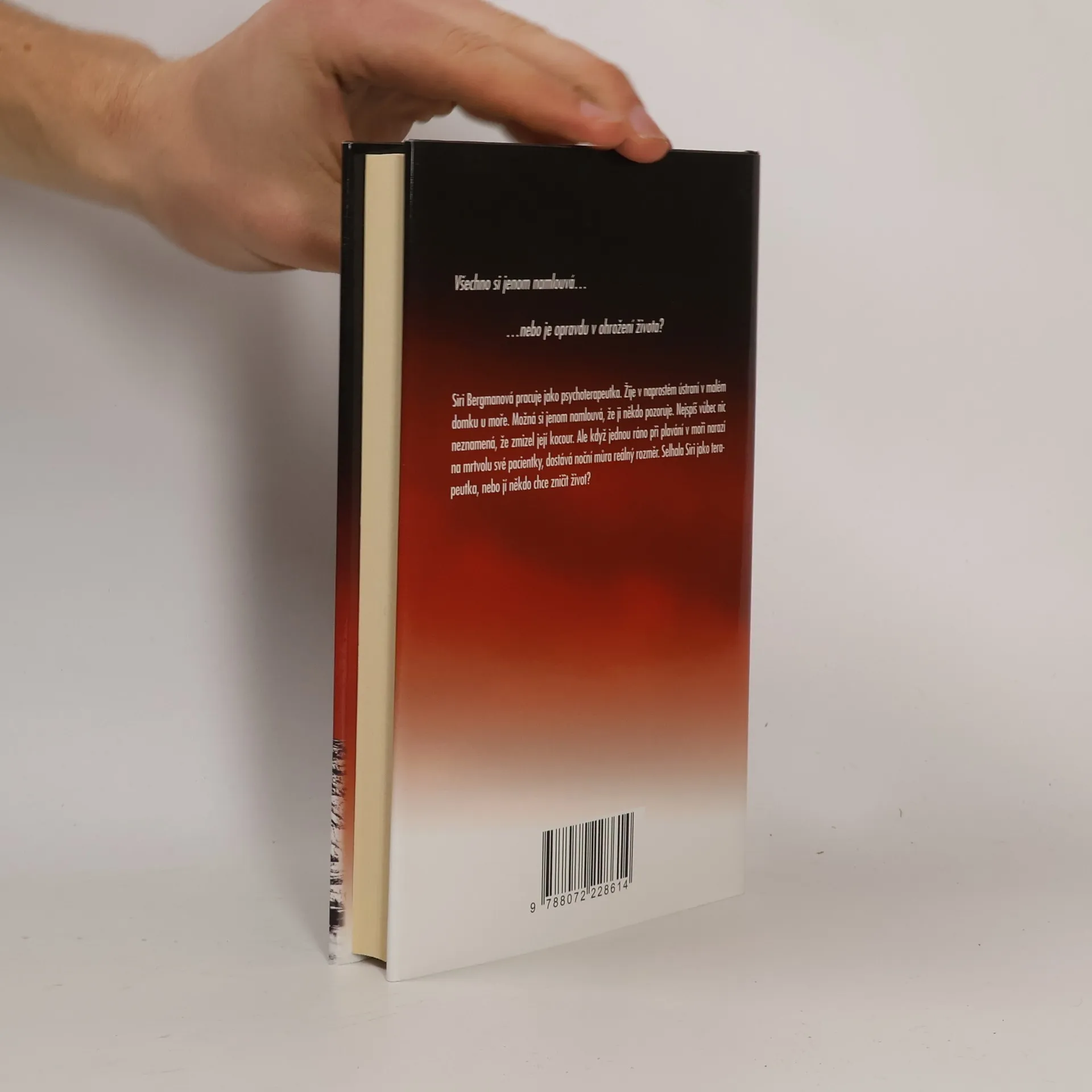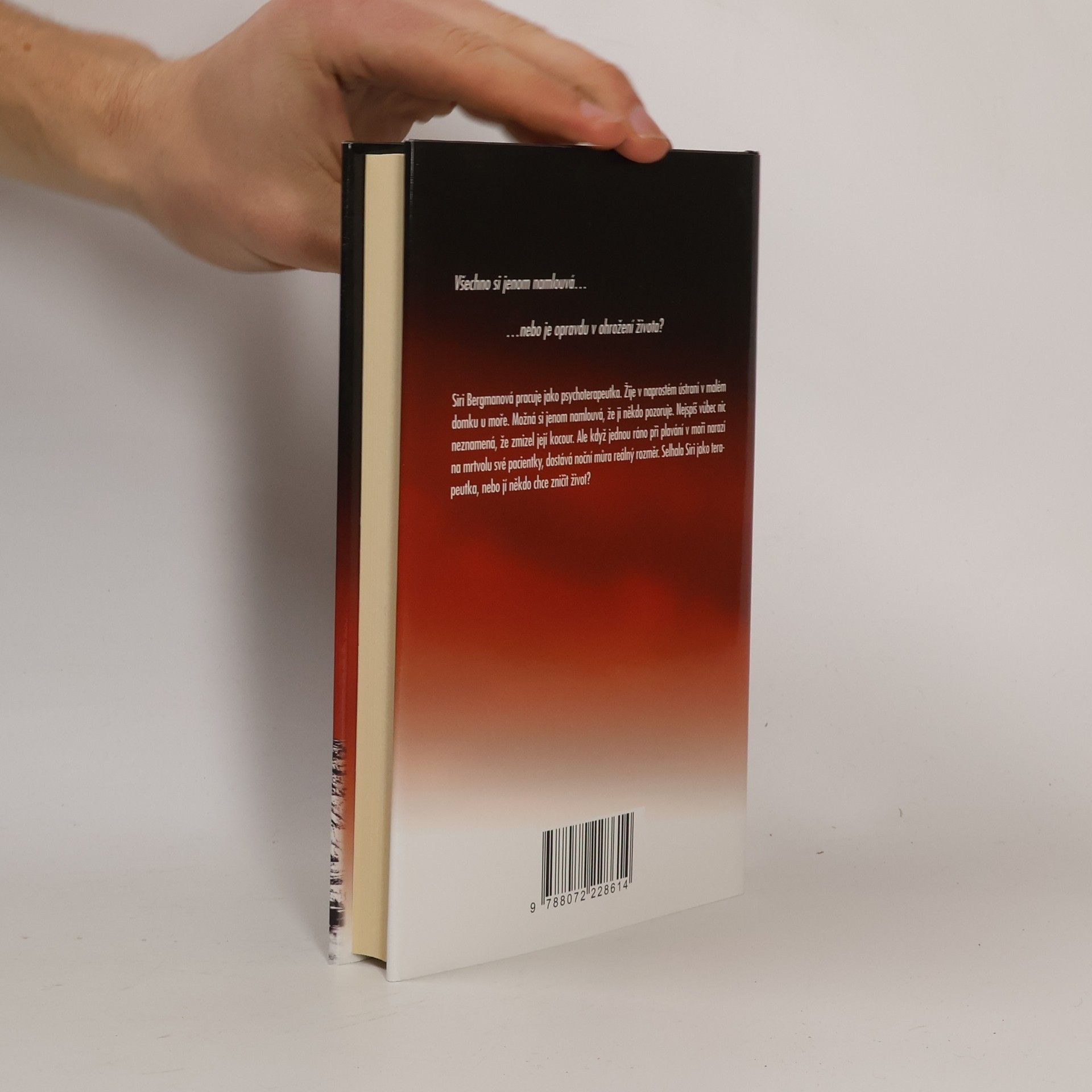 Všechno si jenom namlouvá, nebo je opravdu v ohrožení života? Siri Bergmanová pracuje jako psychoterapeutka v malé lékařské praxi v centru Stockholmu. Je zvyklá na setkání s duševními propastmi a bolestnými tajemstvími. Už rok, od chvíle, kdy její muž zahynul při potápěčské výpravě, bojuje především sama se sebou. Žije v naprostém ústraní v malém domku u moře. Navzdory svému panickému strachu ze tmy chce dokázat, že se vyrovná s vlastní samotou. Možná si jenom namlouvá, že ji někdo pozoruje. Nejspíš vůbec nic neznamená, že zmizel její kocour. Ale když jednou ráno při plavání v moři narazí na mrtvolu své pacientky, dostává noční můra reálný rozměr. Selhala Siri jako terapeutka, nebo jí někdo chce zničit život?
