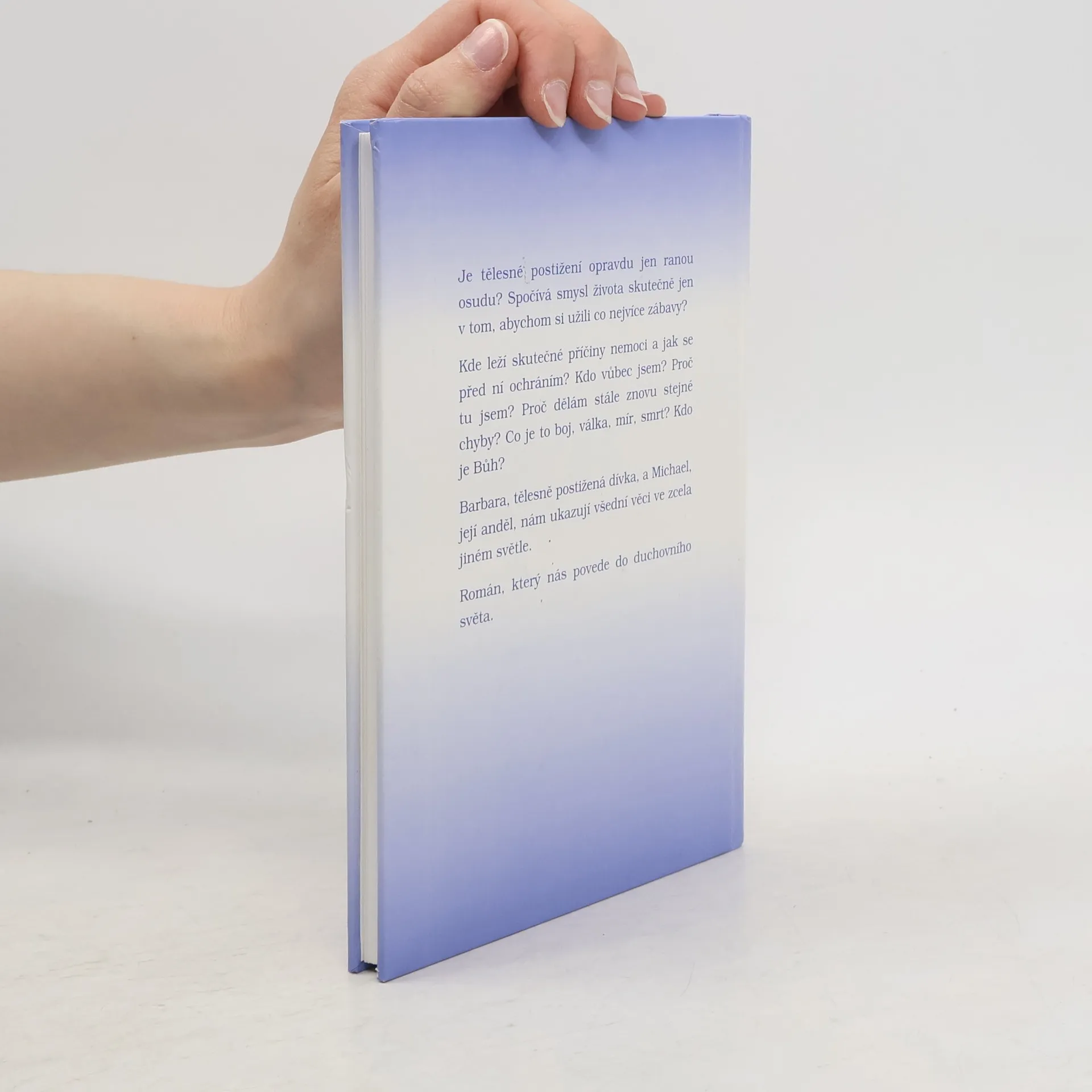 Je tělesné postižení opravdu jen ranou osudu? Spočívá smysl života skutečně jen v tom, abychom si užili co nejvíce zábavy? Kde leží skutečné příčiny nemoci a jak se před ní ochráníme? Kdo vůbec jsem? Proč tu jsem? Proč dělám stále znovu stejné chyby? Co je to boj, válka, mír, smrt? Kdo je Bůh? Barbara tělesně postižená dívka, a Michael, její anděl, nám ukazují všední věci ve zcela jiném světle.