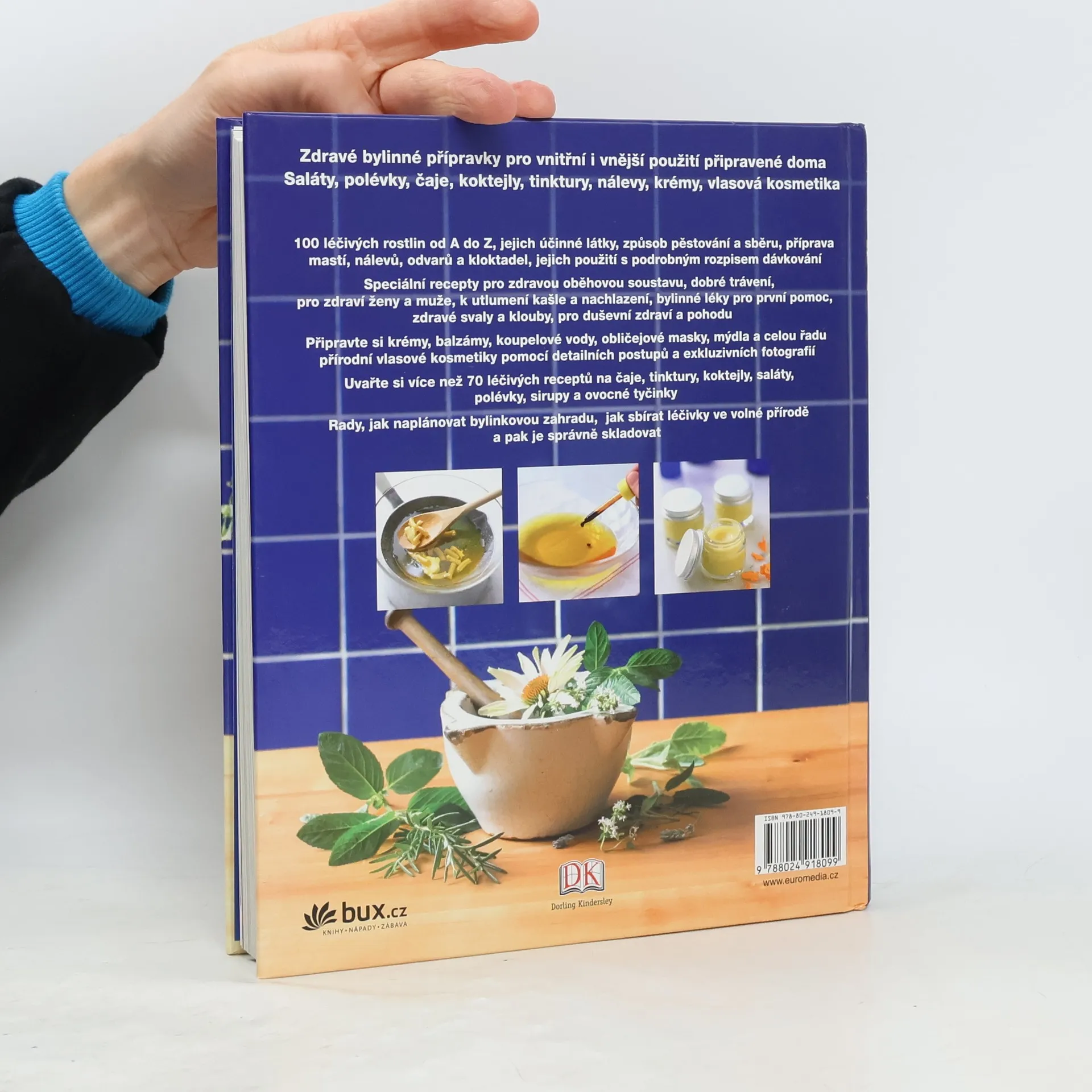 Poznejte 100 klíčových léčivek, jejich účinné látky a způsob pěstování a sběru. Namíchejte si masti, nálevy, odvary a kloktadla, u nichž najdete podrobný rozpis dávkování. Připravte si krémy, balzámy, obličejové masky a vlasovou kosmetiku pomocí detailních postupů a exkluzivních fotografií. Uvařte si více než 70 léčivých receptů na čaje, tinktury, koktejly, saláty, polévky, sirupy. Vyhledejte si speciální recepty pro dobré trávení, k utlumení kašle, bylinné léky pro první pomoc, zdravé klouby, pro duševní zdraví a pohodu.