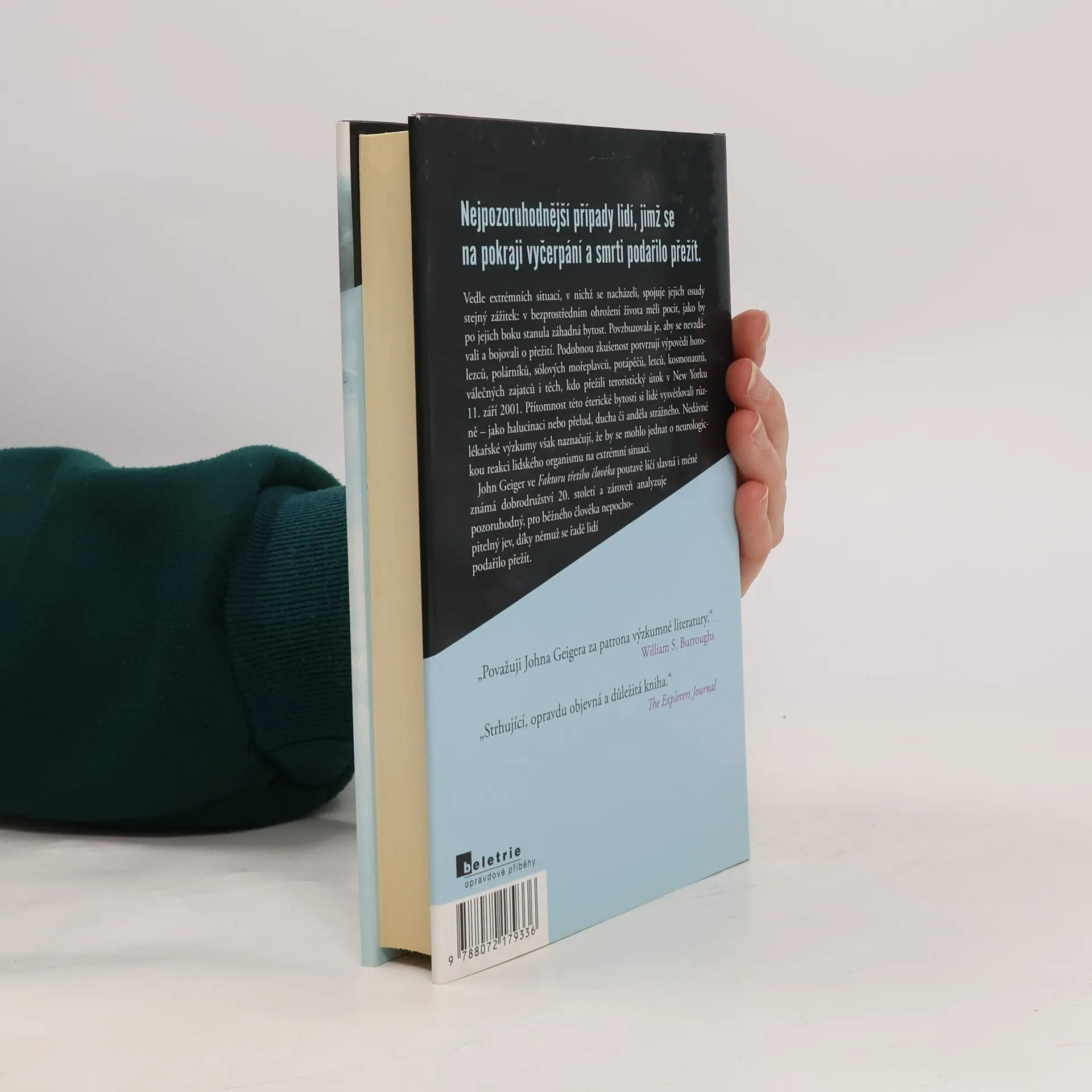 Nejpozoruhodnější případy lidí, jimž se na pokraji vyčerpání a smrti podařilo přežít. Vedle extrémních situací, v nichž se nacházeli, spojuje jejich osudy stejný zážitek: v bezprostředním ohrožení života měli pocit, jako by po jejich boku stanula nějaká bytost, která je povzbuzovala, aby se nevzdávali a bojovali o přežití. Podobnou zkušenost potvrzují například výpovědi horolezců, polárníků, sólových mořeplavců, potápěčů, letců, kosmonautů, válečných zajatců i těch, kdo přežili teroristický útok v New Yorku 11. září 2001. Přítomnost této éterické bytosti si lidé vysvětlovali různě – jako halucinaci nebo přelud, ducha či anděla strážného. Nedávné lékařské výzkumy však naznačují, že by se mohlo jednat o neurologickou reakci lidského organismu na extrémní situaci. Autor John Geiger v této knize poutavě líčí slavná i méně známá dobrodružství 20. století a zároveň analyzuje pozoruhodný, pro běžného člověka nepochopitelný jev, díky němuž se řadě lidí podařilo přežít.