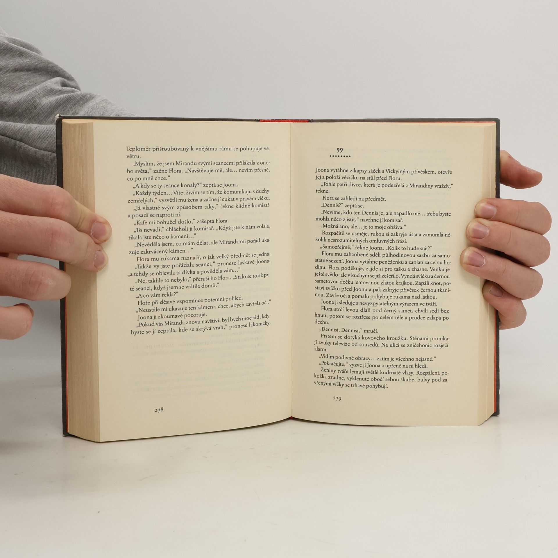 Inspektor Joona Linna již strávil na místě činu více času než kterýkoli jiný detektiv. Stále však má pocit, že mu něco uniklo. Hledí na dívku v posteli. Obličej má zakrytý rukama, jako by si hrála na schovávanou. Celý pokoj je od krve, na jejím útlém těle však není jediná kapička. Joona pozoruje mrtvolu, prodlévá u každého detailu a přemýšlí. Je to vlastně ještě dítě, ale osud ji zavedl až do tohoto pokoje, do střediska speciální péče pro mládež. Možná měla jen smůlu na rodiče a pěstouny. Možná si mysleli, že tu bude v bezpečí… Policie při vyšetřování komplikovaných případů občas využívá i pomoci spiritistických médií, není však známo, že by takováto spolupráce někdy přinesla ovoce. Proto když na linku pro veřejnost zavolá Flora Hansenová a tvrdí, že ji navštívil duch zavražděné dívky, nikdo jí nevěnuje pozornost. Hon na pachatele je plný nečekaných zvratů. Každá nalezená odpověď vede k dalším záhadám. Ačkoli pátrání dospělo do mrtvého bodu, policie telefonáty Flory Hansenové nadále ignoruje. Nejprve za svou informaci žádala peníze, nyní však jen úpěnlivě prosí, aby ji vyslechli…