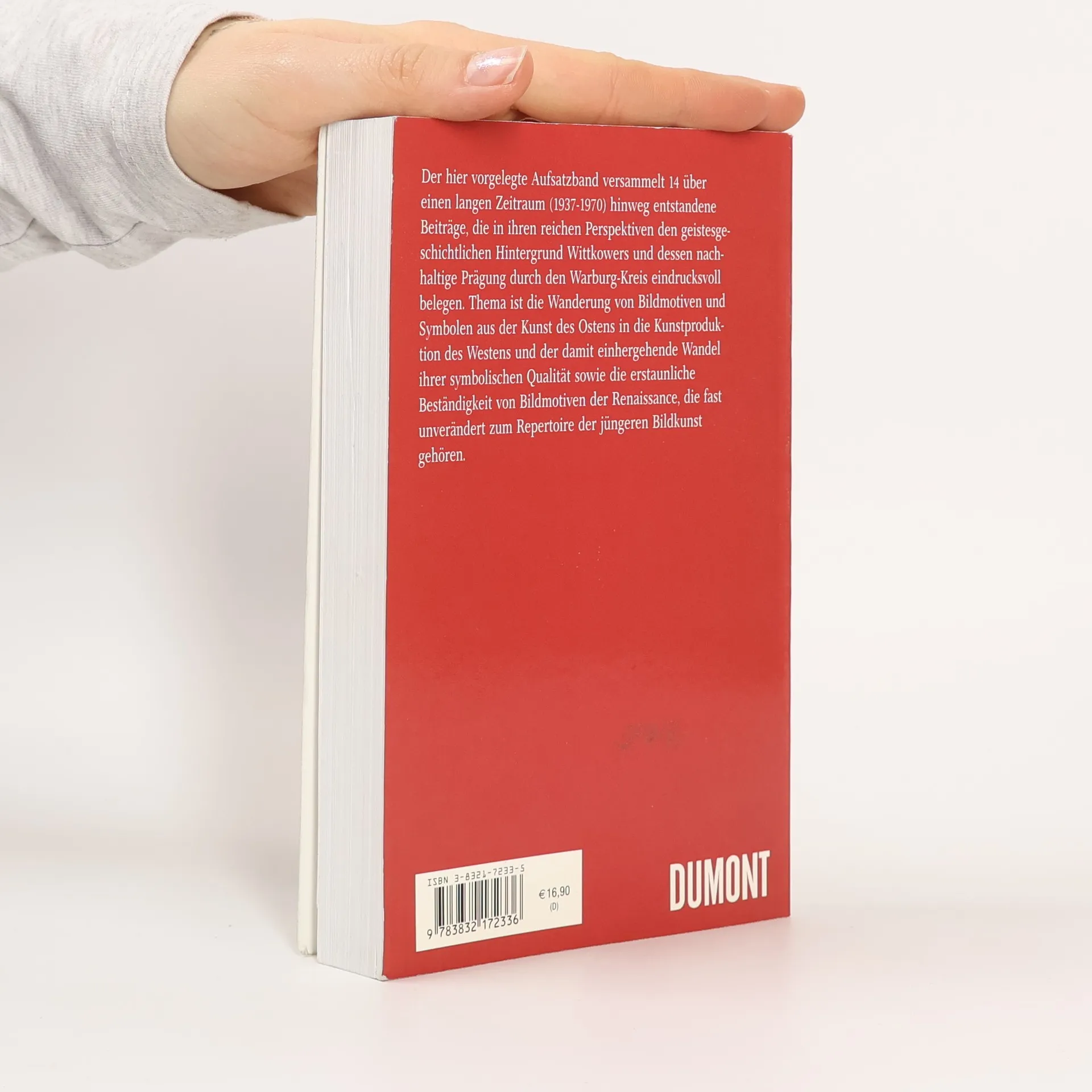Ein nicht geringes Repertoire an Bildmaterial und Symbolen des Abendlandes besteht in Entlehnungen aus der Kunst des Ostens. Wie aber kommt es zu diesen Vorgängen des kulturell-künstlerischen Transfers und, vor allem, welchem Wandel wird dabei die symbolische Qualität der Motive unterworfen? Auf solche Fragen richtet sich das Erkenntnisinteresse Rudolf Wittkowers, dessen geistige Heimat – und hierin gleicht er Erwin Panofsky – im Warburg-Kreis zu finden ist. In einer zweiten Gruppe der in diesem Band wiedergegebenen vierzehn Aufsätze widmet sich Wittkower der Untersuchung von Bildmotiven der Renaissance, die mit einer erstaunlichen Kontinuität immer wieder in der Bildenden Kunst auftauchen: so etwa die Darstellung der Minerva oder die Allegorie der „Grammatica". In der zweiten Hälfte der sechziger und den frühen siebziger Jahre, im Zuge eines sich insgesamt wandelnden geistigen und politischen Klimas in Deutschland forcierte der DuMont Verlag durch Herausgabe einiger ihrer wichtigsten Werke die publizistische Repatriierung und Rehabilitierung der 1933 zur Emigration gezwungenen Kunstwissenschaftler. Eine vernunftgeleitete, den Axiomen eines konsequenten Aufklärungsdenkens verpflichtete Schule, die im angelsächsischen Raum bereits wichtige Impulse gegeben hatte, kam nun auch in Deutschland wieder zu ihrem Recht.