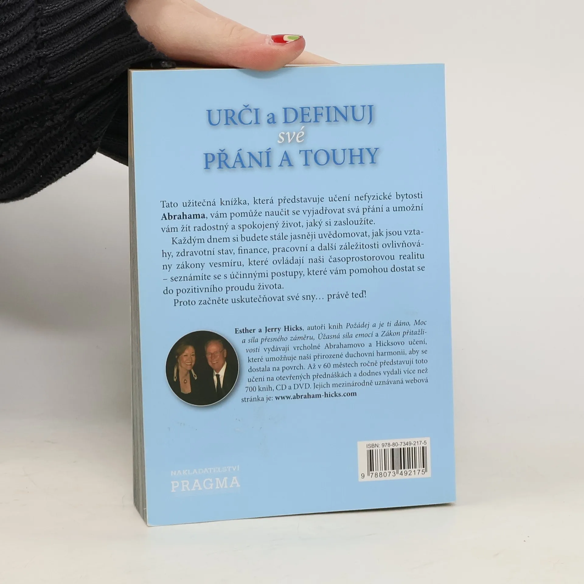 Tato užitečná kniha, která představuje učení nefyzické bytosti Abrahama, vám pomůže naučit vyjadřovat svá přání a umožní vám žít radostný a spokojený život, jaký si zasloužíte. Každým dnem si budete stále jasněji uvědomovat, jak jsou vztahy, zdravotní stav, finance, pracovní a další záležitosti ovlivňovány zákony vesmíru. Tyto vesmírné zákony ovládají naši časoprostorovou realitu – seznámíte se s účinnými postupy, které vám pomohou dostat se do pozitivního proudu života. Uvědomíte si, že jste pokračováním zdroje energie, že jste požehnané, milované bytosti a že jste přišli do fyzické časoprostorové reality, abyste radostně tvořili. Slova vás nic nenaučí. Skutečné znalosti získáte na základě vlastní životní zkušenosti. Narodili jste se s vědomím toho, že vytváříte vlastní realitu. A toto vědomí je tak hluboko ve vás, že když se někdo pokouší vaši tvorbu překazit, okamžitě přestáváte cítit harmonii. Jste tvůrcem vlastního života. A základem vašeho skutečného života je naprostá svoboda a především vědomí, že vytváření vlastního života záleží naprosto a pouze na vás samotných. Proto začněte uskutečňovat své sny… právě teď!