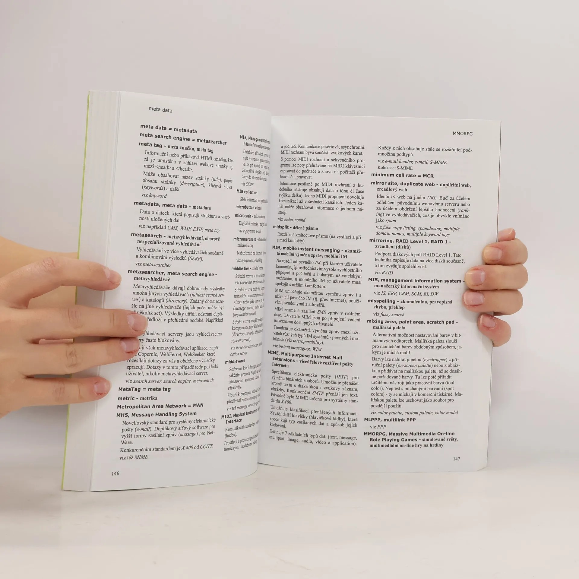 Slovník obsahuje přes 6000 pojmů, 3900 anglických a 2400 českých. Zabývá se především webovými aplikacemi, webovou grafikou, tvorbou web stránek, e-mailem, vyhledáváním, e-marketingem, zabezpečením, sitěmi - včetně bezdrátových, infrastrukturou internetu, telekomunikacemi - včetně mobilní telefonie, připojením k internetu a mnoha dalšími službami spojenými s internetem. U českých pojmů jsou uvedeny odkazy na anglické výrazy a případné kolokace.