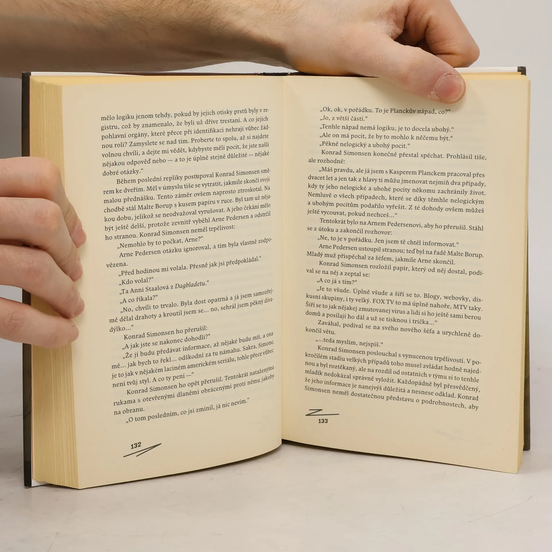 Jednoho rána vběhnou děti do školní tělocvičny a spatří něco hrozného: ze stropu tam visí pět nahých znetvořených mužských těl. Na místo je povolán komisař Simonsen se svým týmem z kodaňského oddělení vražd. Výslechy brzy odhalí prvního podezřelého: školníka Pera Clausena. Ten sice nevypadá jako bestiální vrah, ale od začátku je patrné, že ví víc, než prozradil. Pátrání dlouho nepřináší odpovědi na základní otázky: Co bylo motivem? A proč byla vražda pěti mužů pečlivě naaranžována jako hromadná poprava? Dříve než od policie získává dánská veřejnost informace z rafinované kampaně v tisku a celý případ se rázem jeví ve zcela jiné perspektivě. Je možné, aby vrah byl zároveň obětí? A kdo bude nakonec rozhodovat o vině a nevině – média, veřejné mínění, nebo Konrad Simonsen a jeho tým?