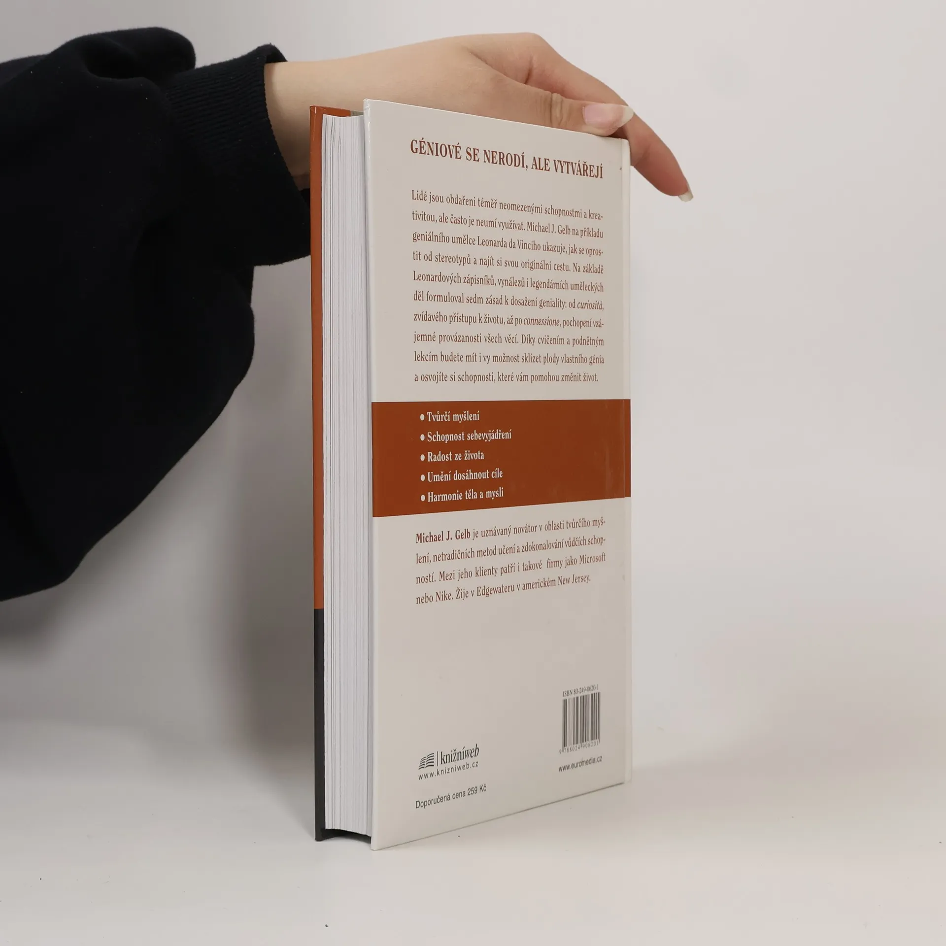 Géniové se nerodí, ale vytvářejí. Lidé jsou obdařeni téměř neomezenými schopnostmi a kreativitou, ale často je neumí využívat. Michael J. Gelb na příkladu geniálního umělce Leonarda da Vinciho ukazuje, jak se oprostit od stereotypů a najít si svou originální cestu. Na základě Leonardových zápisníků, vynálezů i legendárních uměleckých děl formuloval sedm zásad k dosažení geniality: od curiosita, zvídavého přístupu k životu, až po connessione, pochopení vzájemné provázanosti všech věcí. Díky cvičením a podnětným lekcím budete mít i vy možnost sklízet plody vlastního génia a osvojíte si schopnosti, které vám pomohou změnit život. · Tvůrčí myšlení · Schopnost sebevyjádření · Radost ze života · Umění dosáhnout cíle · Harmonie těla a mysli. ... celý text