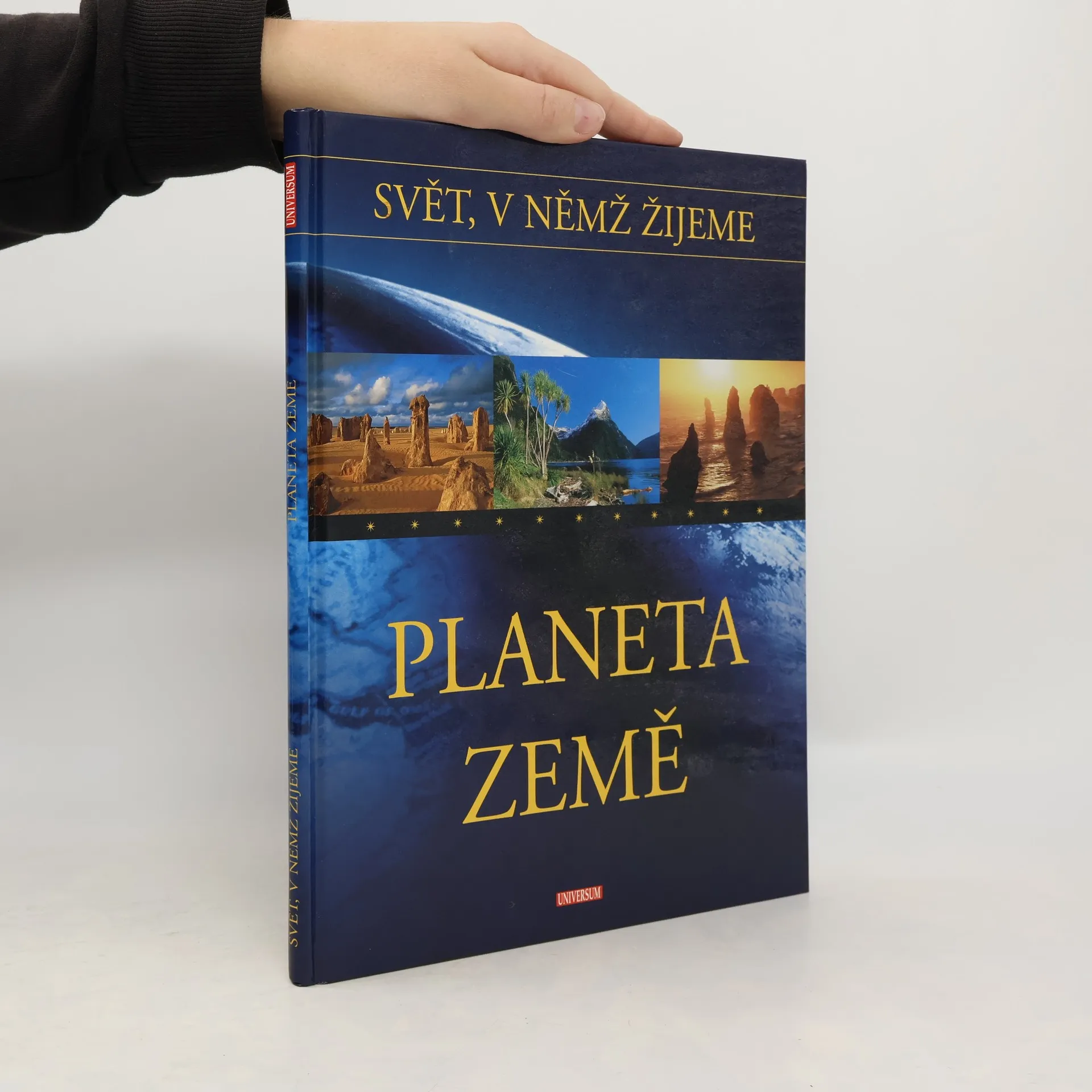 Svět, v němž žijeme kombinuje ve fascinujících fotografiích, přehledných mapách a fundovaných textech obecné vědění o životě na ,,Modré planetě,,. Podrobně a srozumitelně ukazuje jednotlivé kontinenty, divy světa, zvířata a rostliny, národy a kultury. Soubor představuje napínavou cestu spojující minulost, přítomnost a budoucnost světa, ve kterém žijeme. Planeta Země se utvářela miliony let a její vývoj stále pokračuje. Šestý svazek cyklu Svět, v němž žijeme ukazuje formování naší planety a popisuje její dnešní fyzicko-geografickou tvář, mohutná horstva, úchvatné pobřežní krajiny, aktivní sopky, hluboké oceány, tiše plynoucí řeky i zaledněné regiony. Pozornost je věnována rovněž klimatu a pozoruhodným klimatickým jevům, stejně jako postavení Země ve vesmíru a jejímu nejbližšímu vesmírnému sousedu - Měsíci.