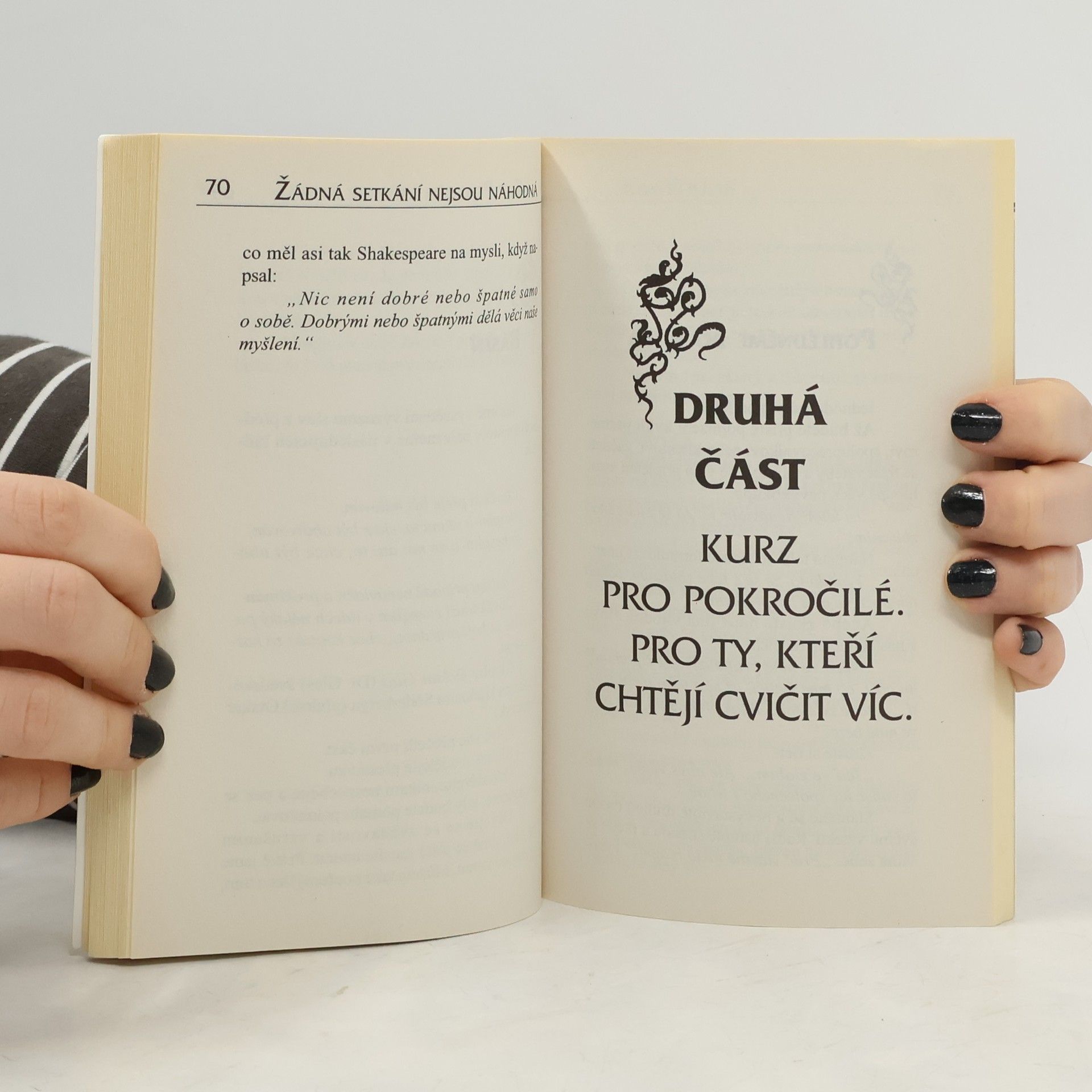 Tato kniha ukazuje rychlou a jednoduchou možnost, jak změnit naše životy a životy těch okolo nás prostřednictvím způsobu, jakým řešíme běžná denní setkání. Předkládá série jednoduchých nápadů, pohledů a cvičení, která pomohou čtenářům vidět opravdově sami sebe a druhé a jednat v souladu s tím. Dává reálnou naději na utvoření lepších mezilidských vztahů.