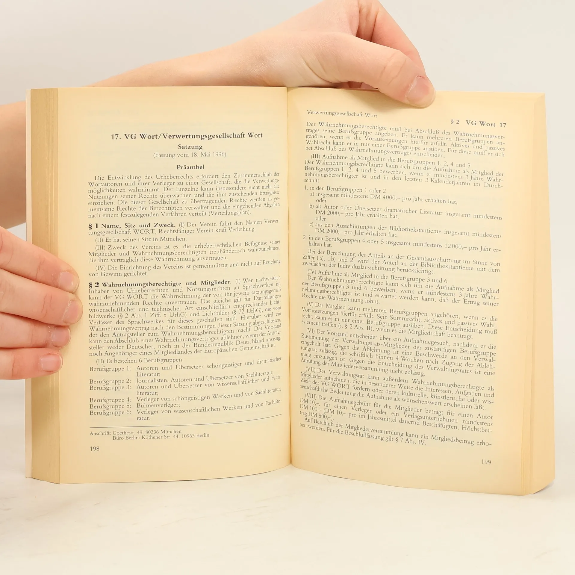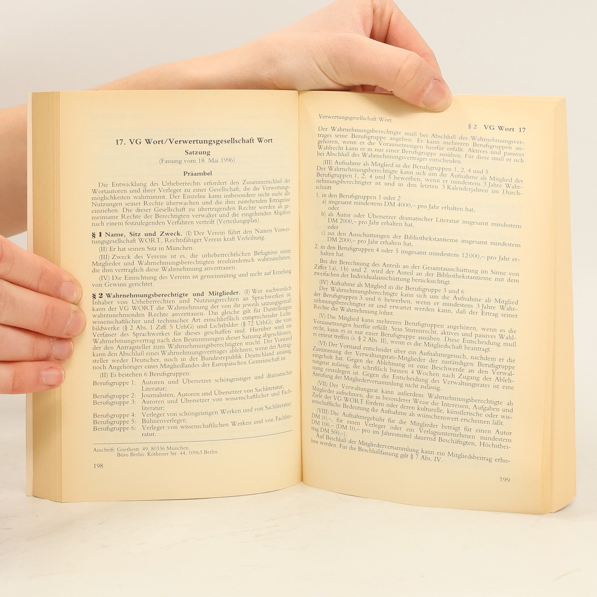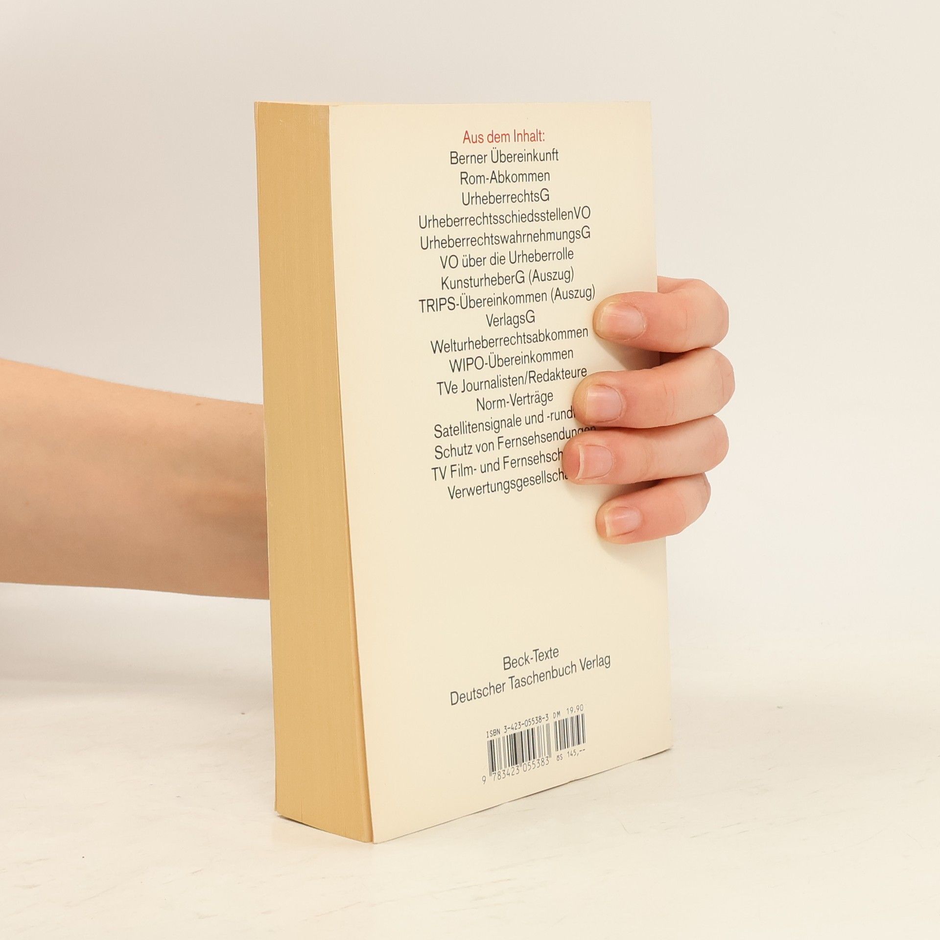 Inhalt VerwertungsgesellschaftenG, Berner Übereinkunft, Rom-Abkommen, UrheberrechtsG, , VO über das Register -anonymer und pseudonymer Werke, KunsturheberG (Auszug), TRIPS-Übereinkommen (Auszug), VerlagsG, Welturheberrechtsabkommen, WIPO-Übereinkommen/WCT, WPPT, TVe Journalisten/Redakteure, Norm-Verträge, Satellitensignale und -rundfunk, Schutz von Fernsehsendungen, TV Film- und Fernsehschaffende, Verwertungsgesellschaften, EG-Richtlinien, Internationale Übereinkommen Neuauflage Eingearbeitet wurden insbesondere bereits - Das Gesetz zur Umsetzung der Marrakesch-Richtlinie über einen verbesserten Zugang zu urheberrechtlich geschützten Werken zugunsten von Menschen mit einer Seh- oder Lesebehinderung („Marrakesch-RL-UmsetzungsG“) vom 28. November 2018 - mit den entsprechenden neuen §§ 45b-45d UrhG - Zahlreiche Neufassungen von Satzungen und Gesellschaftsverträgen der Verwertungsgesellschaften Zielgruppe Für Rechtsanwälte, Richter, Verlagsjustiziare, Verwertungsgesellschaften und alle, die mit Fragen des Urheberrechts zu tun haben.