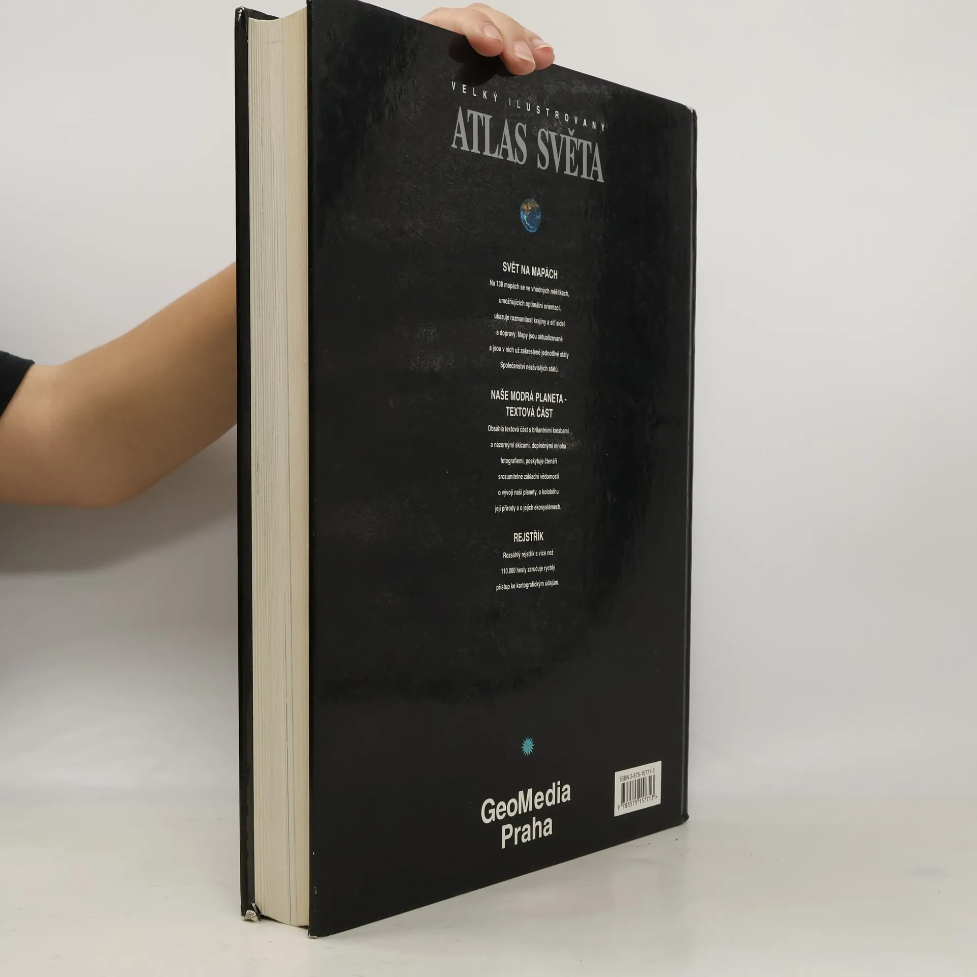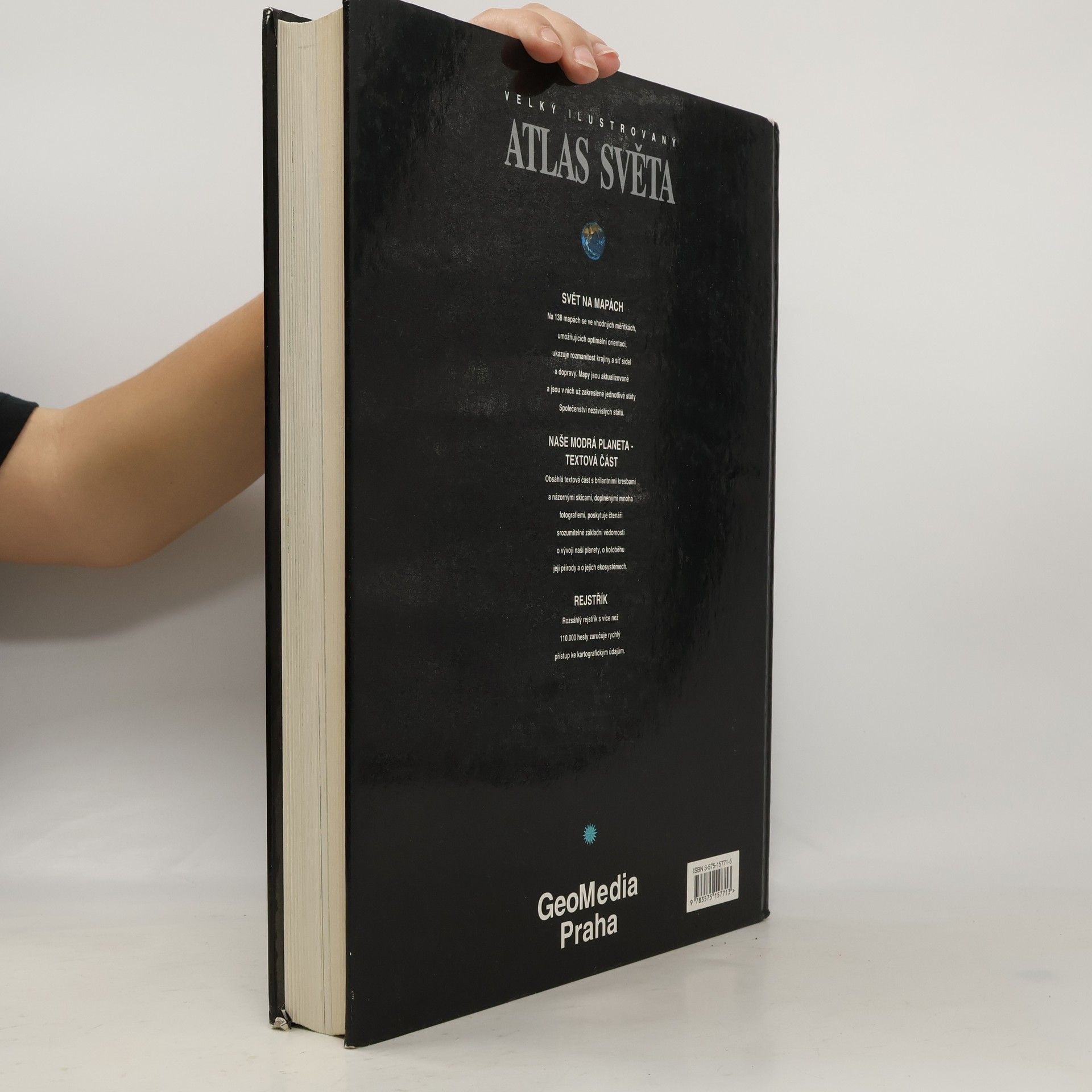 Tento ATLAS podává na přehledných mapách podrobný a názorný portrét Země. Pomocí vhodných měřítek, zaručujících velkou míru vzájemné srovnatelnosti map, jsou jasně znázorněny jak rozmanité struktury reliéfu, tak kulturně krajinné prvky a sídla, hranice a dopravní cesty. ATLAS umožňuje optimální orientaci po celém světě. Do ATLASU jsou důsledně zapracovány neustálé proměny historickopolitických struktur. Kartografie je maximálně aktualizovaná a zachycuje už i hranice uvnitř Společenství nezávislých států a změny v Jugoslávii. Podrobný obsah, četné mapové přehledy a obsáhlý rejstřík s více než 110. 000 hesly poskytují mnohostranný přístup k obsahu díla. Aktuální ATLAS a moderní portrét naší planety vyžadují stále více základních vědomostí o vzniku Země, o koloběhu přírody a o přírodních fenoménech, o rozmanitých tvarech povrchu, o velkých ekosystémech a jejich přírodním vybavení. Obsáhlá textová část s brilantními kresbami a skicami, doplněnými často fotografiemi, srozumitelně vysvětluje mnohdy velmi komplexní souvislosti. Stavba Země, vznik horstev, doby ledové, ozónová vrstva, skleníkový efekt, uragány, ekosystém deštného lesa jsou jen příklady obsahové šíře této velké kapitoly ATLASU.