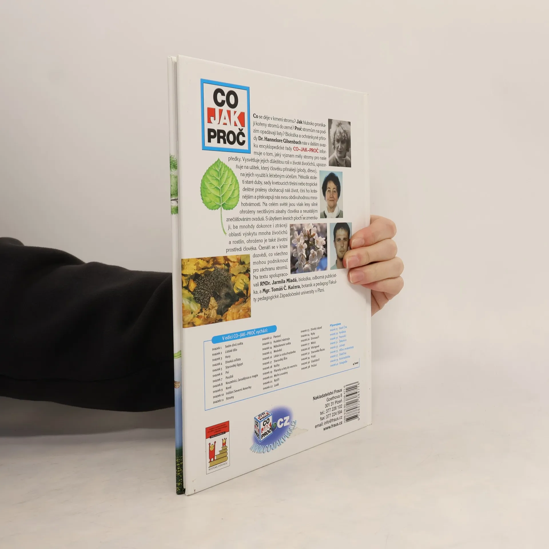 Co se děje v kmeni stromu? Jak hluboko pronikají kořeny do země? Proč listnaté stromy na podzim opadávají? Bioložka a ochránkyně přírody Dr. Hannelore Gilsenbachová vypráví o významu stromů pro naše předky. Vysvětluje, jak důležitou roli hrají stromy v životě živočichů a jaký užitek přinášejí člověku díky svým chutným plodům, nebo dřevu, které vydrží po staletí, či díky léčivým látkám. Několik století staré duby, kvetoucí třešně nebo tropické deštné pralesy – to jsou stromy, které dělají náš život krásnější a překvapují nás svou obdivuhodnou mnohotvárností. Na celém světě jsou ale lesy silně ohroženy zásahy člověka a zhoršujícím se znečištěním ovzduší. Mizí tak místo pro život mnoha živočišných druhů a ohrožen je i životní prostor člověka. Přítel přírody se v knize proto také dozví, co může udělat pro záchranu stromů. Na textu spolupracovala bioložka, redaktorka, odborná publicistka a emeritní spolupracovnice Akademie věd ČR, RNDr. Jarmila Mladá.