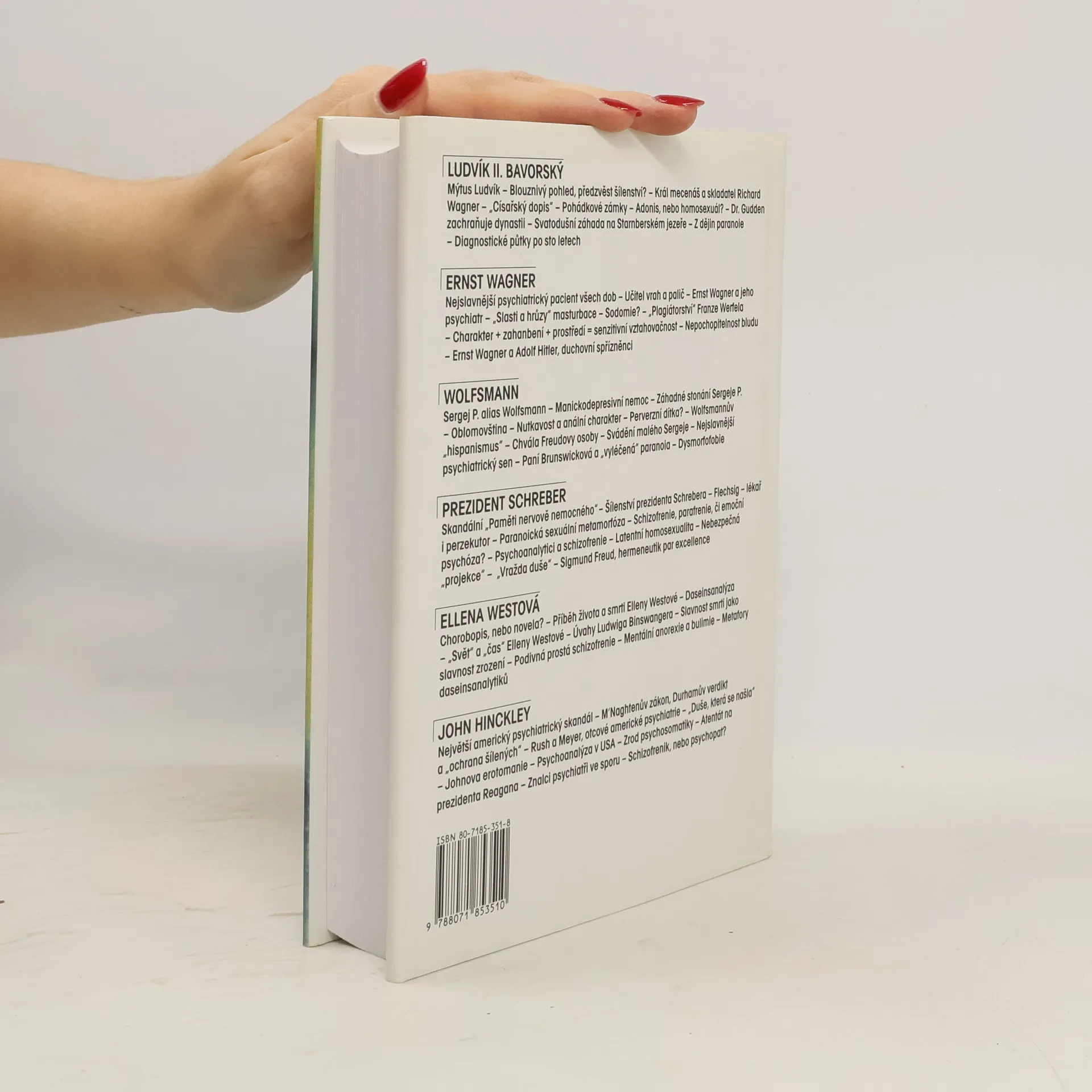 Životní osudy lidí, kteří se kvůli své chorobě či poruše dostali do konfliktu se společenskými nebo trestními zákony 19. a 20. století a jejichž jednání vzbudilo široký ohlas ve veřejnosti a zároveň se stalo předmětem vášnivých odborných polemik odborníků-psychiatrů. Na nejvýraznějších příkladech, ať už jde o šíleného krále Ludvíka Bavorského, inteligentního vraha učitele Wagnera, případ psychicky narušeného Wolfsmanna, jímž se zabýval Freud či případ mladíka, který spáchal atentát na amerického prezidenta Reagana, ilustruje autor vývoj a principy psychiatrie.