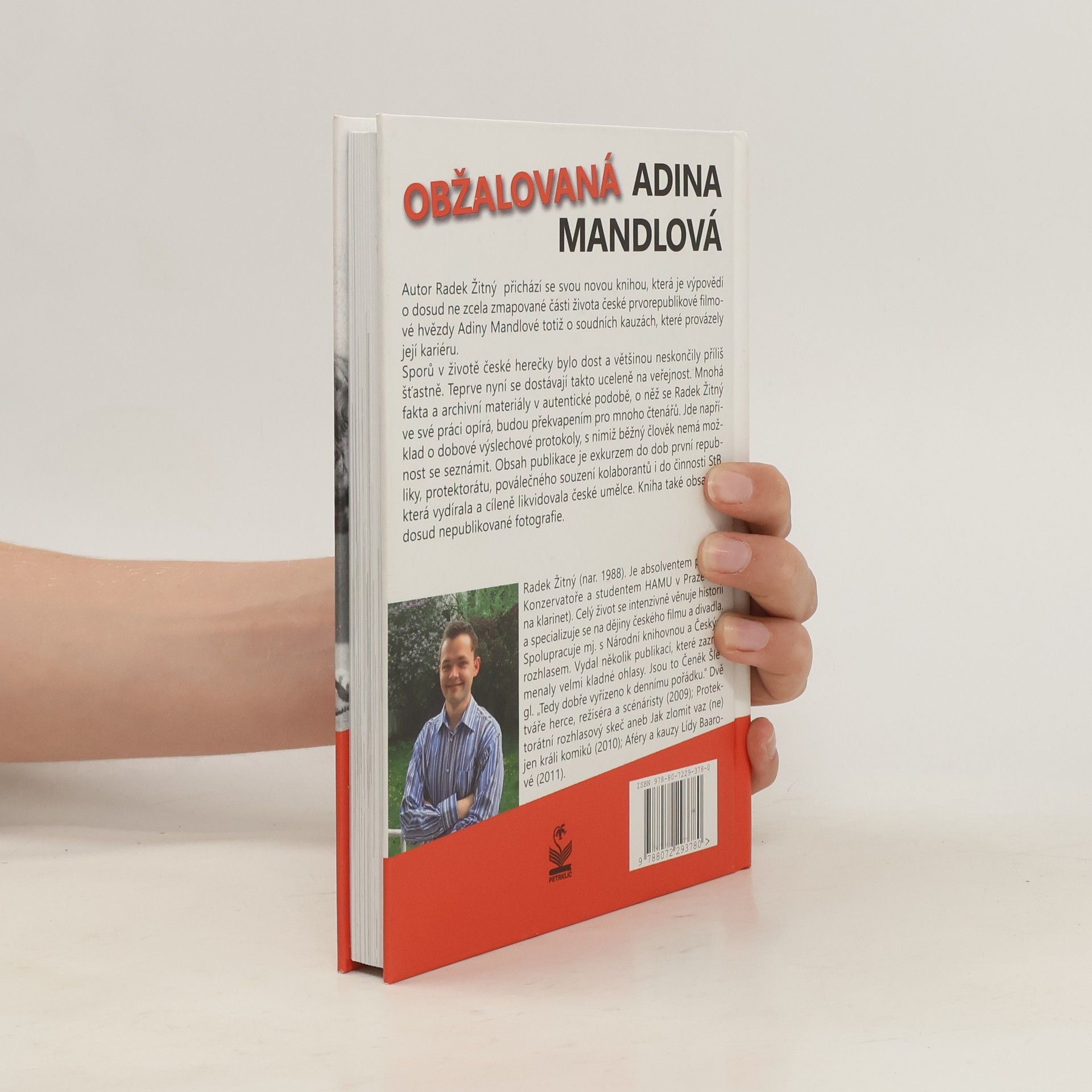 Autor Radek Žitný přichází se svou novou knihou, která je výpovědí o dosud ne zcela zmapované části života české prvorepublikové filmové hvězdy Adiny Mandlové, totiž soudních kauzách, které provázely její kariéru. Sporů v životě české herečky bylo dost a většinou neskončily příliš šťastně. Teprve nyní se dostávají takto uceleně na veřejnost. Mnohá fakta a archivní materiály v autentické podobě, o něž se Radek Žitný ve své práci opírá, budou překvapením pro mnoho čtenářů. Jde například o dobové výslechové protokoly, s nimiž běžný člověk se nemá možnost seznámit. Obsah publikace je exkurzem do dob první republiky, protektorátu, poválečného souzení kolaborantů i do činnosti StB, která vydírala a cíleně likvidovala české umělce. Kniha také obsahuje dosud nepublikované fotografie. Fotografie: Archiv sběratele a archiváře Jaromíra Farníka, archiv autora a nakladatelství.