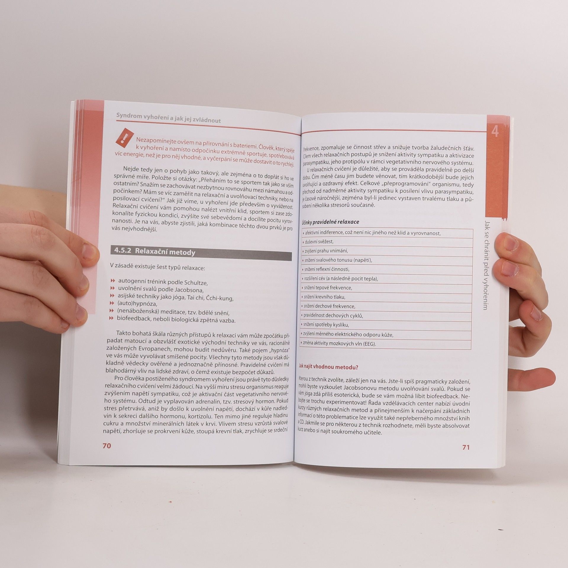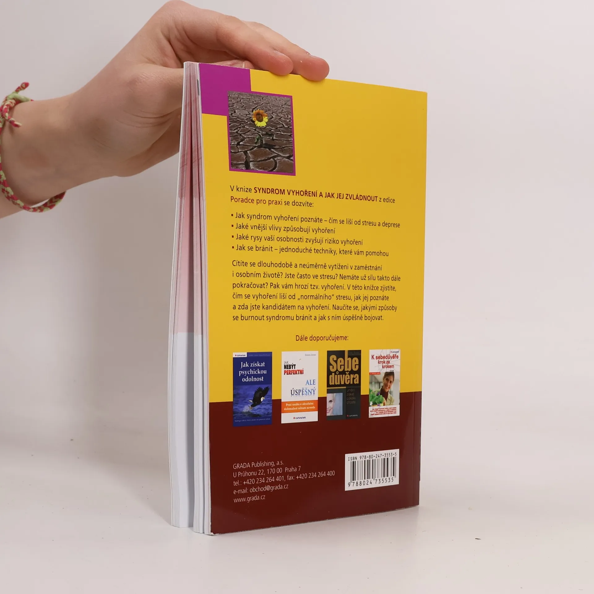 Cítíte se dlouhodobě a neúměrně vytíženi? Jste často ve stresu? Nemáte už sílu takto dále pokračovat? Pak vám hrozí tzv. vyhoření. V této knížce plné příkladů ze života zjistíte, čím se vyhoření liší od "normálního" stresu, jak jej poznáte a zda jste kandidátem na vyhoření. Dočtete se, co syndrom vyhoření způsobuje, jaké faktory v zaměstnání hrají roli (zvýšené pracovní vytížení, bezohlední kolegové, nespravedliví šéfové, konflikty mezi osobním životem a prací) a jaké postoje a vzorce vašeho chování riziko burnout syndromu zvyšují. Poznáte, jak vyhoření účinně předcházet a jak řešit již existující problém. Ať už jste přetěžováni v zaměstnání, anebo se musíte vyrovnat se složitými rodinnými událostmi, pojďte se naučit, jak s vyhořením úspěšně bojovat.